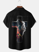 Alohadaddy Holiday Collection Easter Cross Lion Jesus Button Cardigan Stretch Large Size Polyester Short Sleeve Shirt