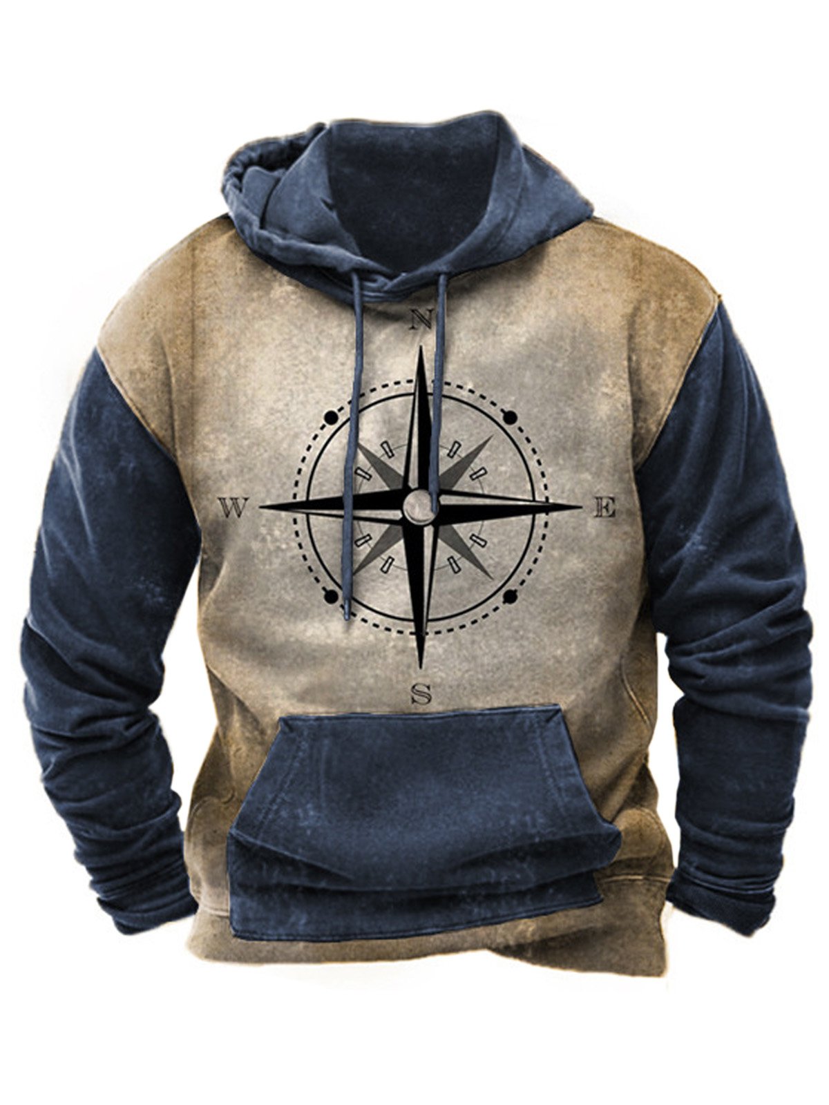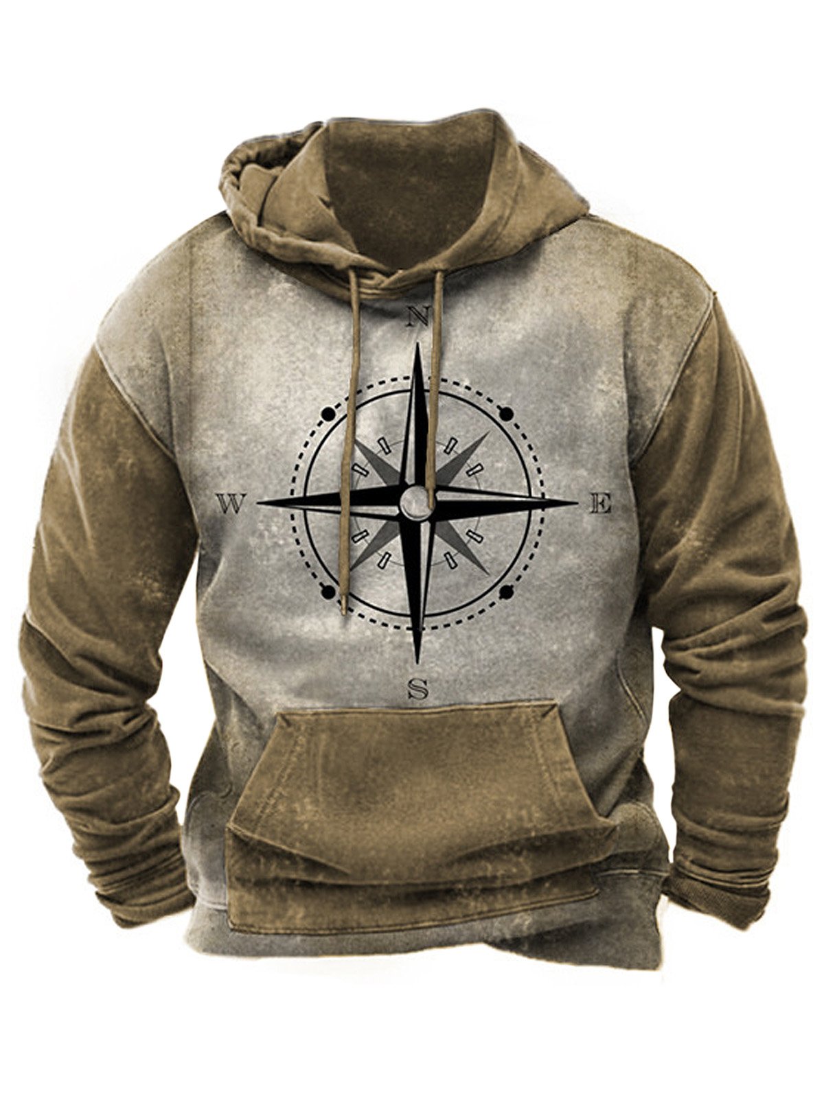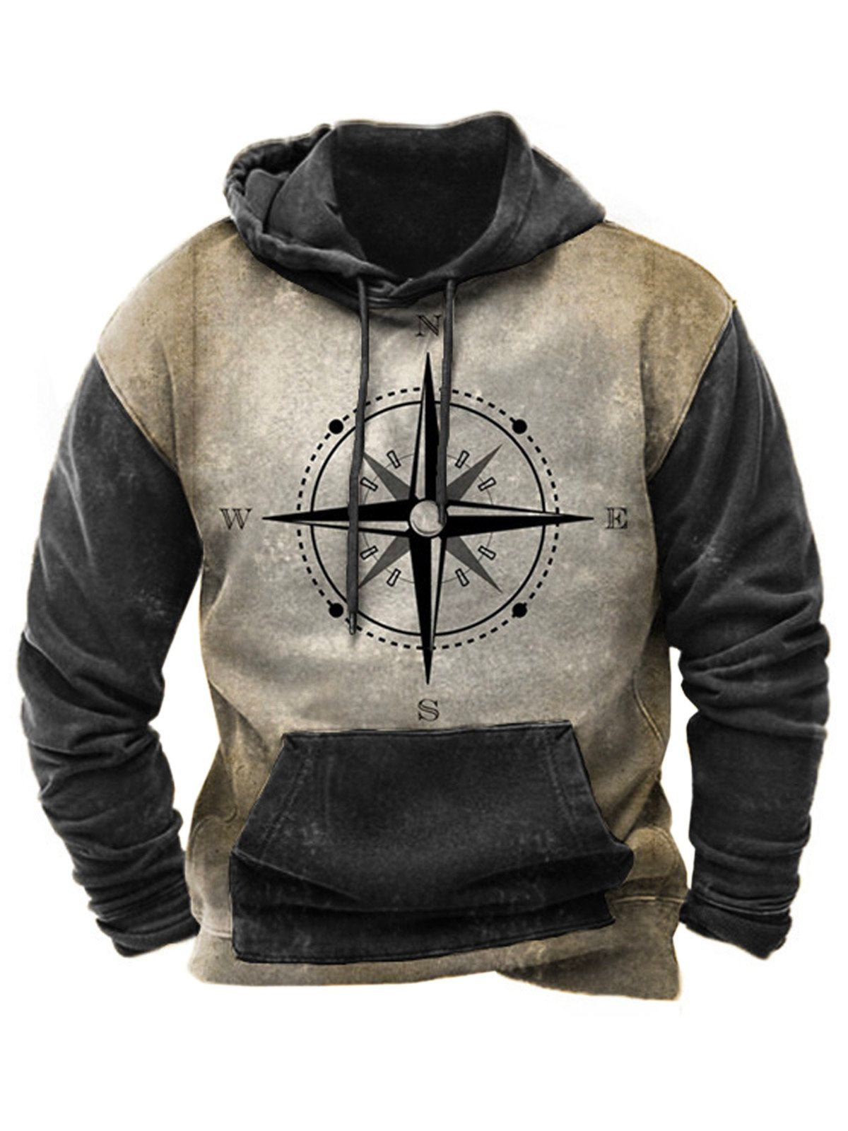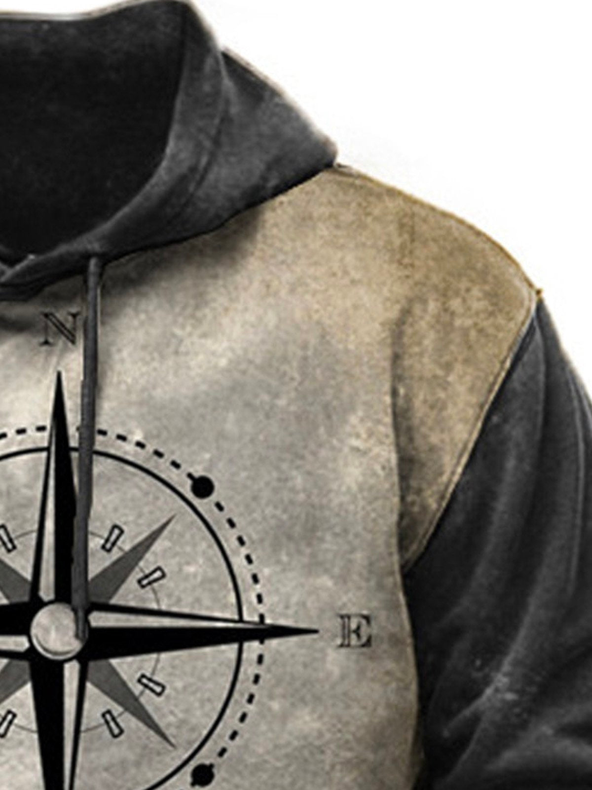 Sudadera con capucha y cordón con estampado de brújula vintage para hombre de Alohadaddy