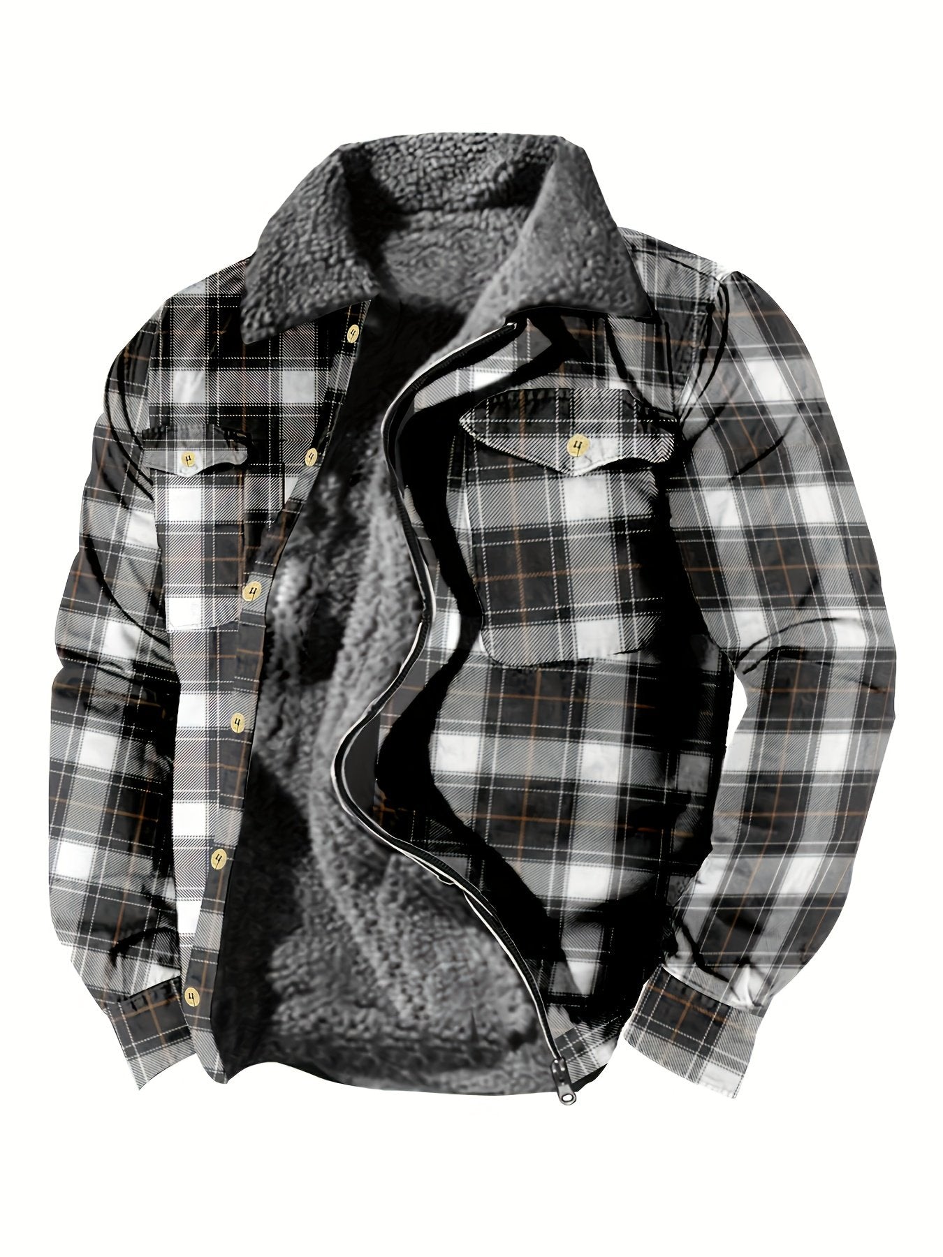 Chaqueta de algodón de manga larga con botones y solapa a cuadros estilo vintage de terciopelo Alohadaddy Plus