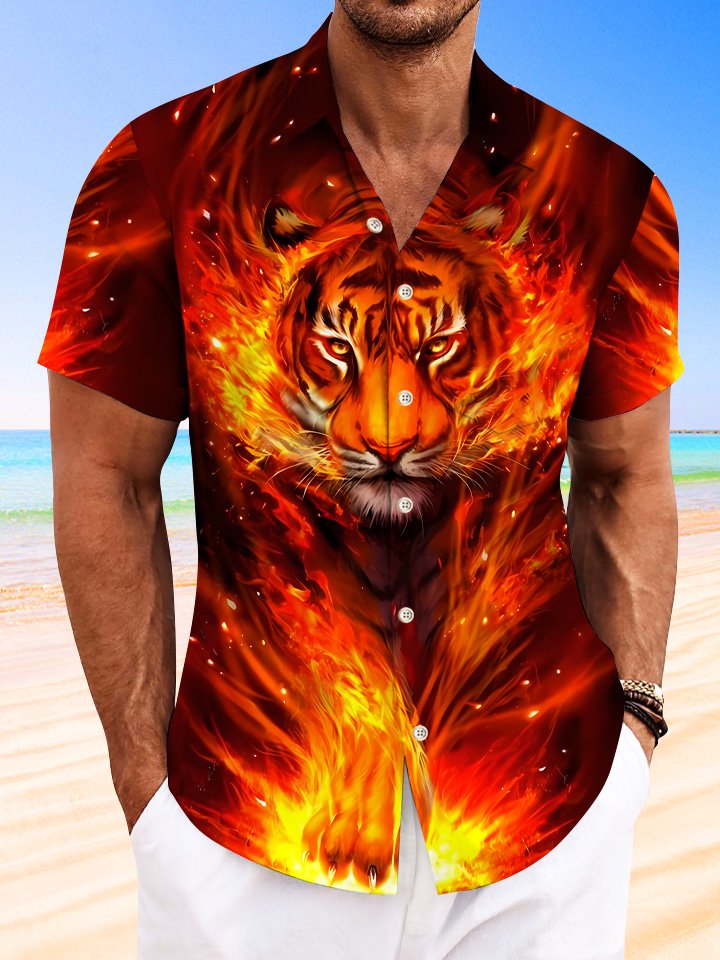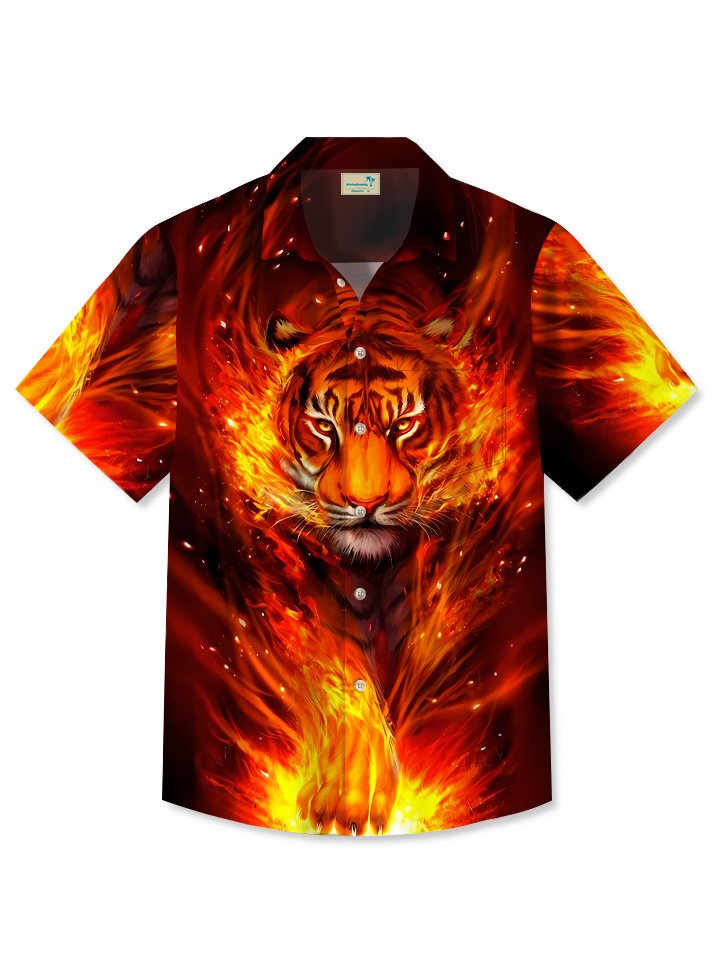 Camisa informal de vacaciones con bolsillo y botones para hombre, con diseño de tigre y animales de verano de Alohadaddy