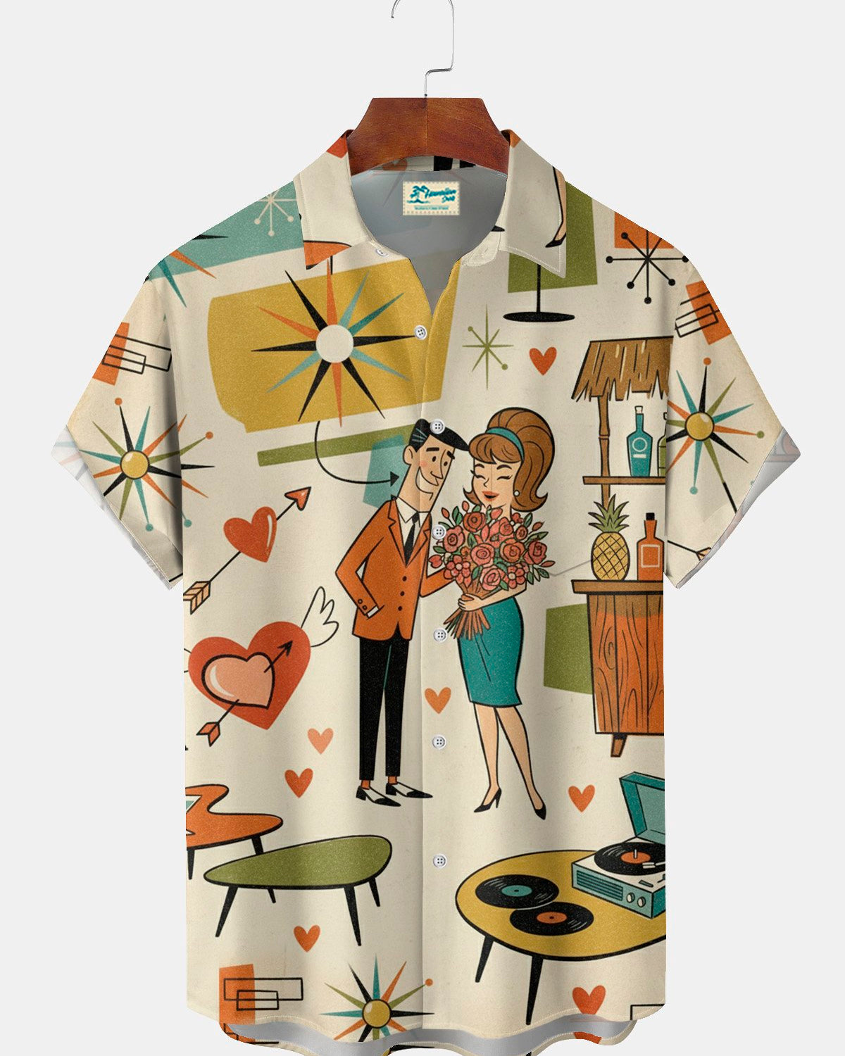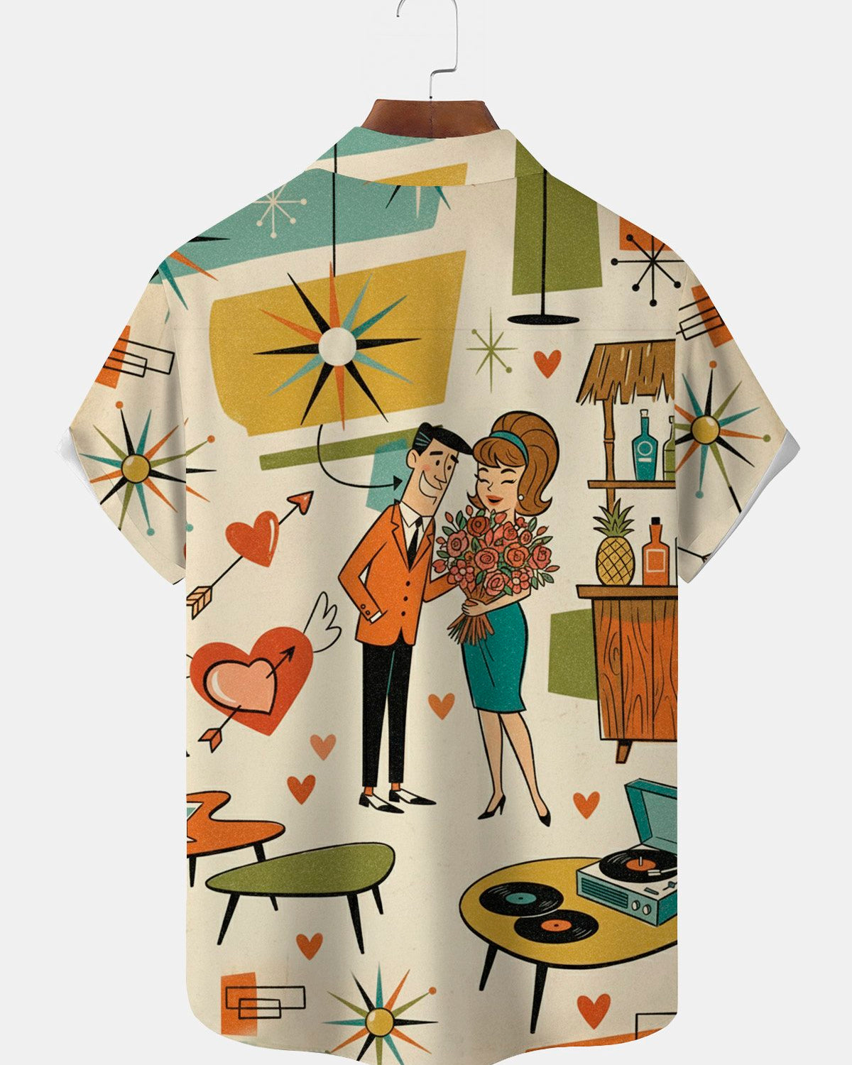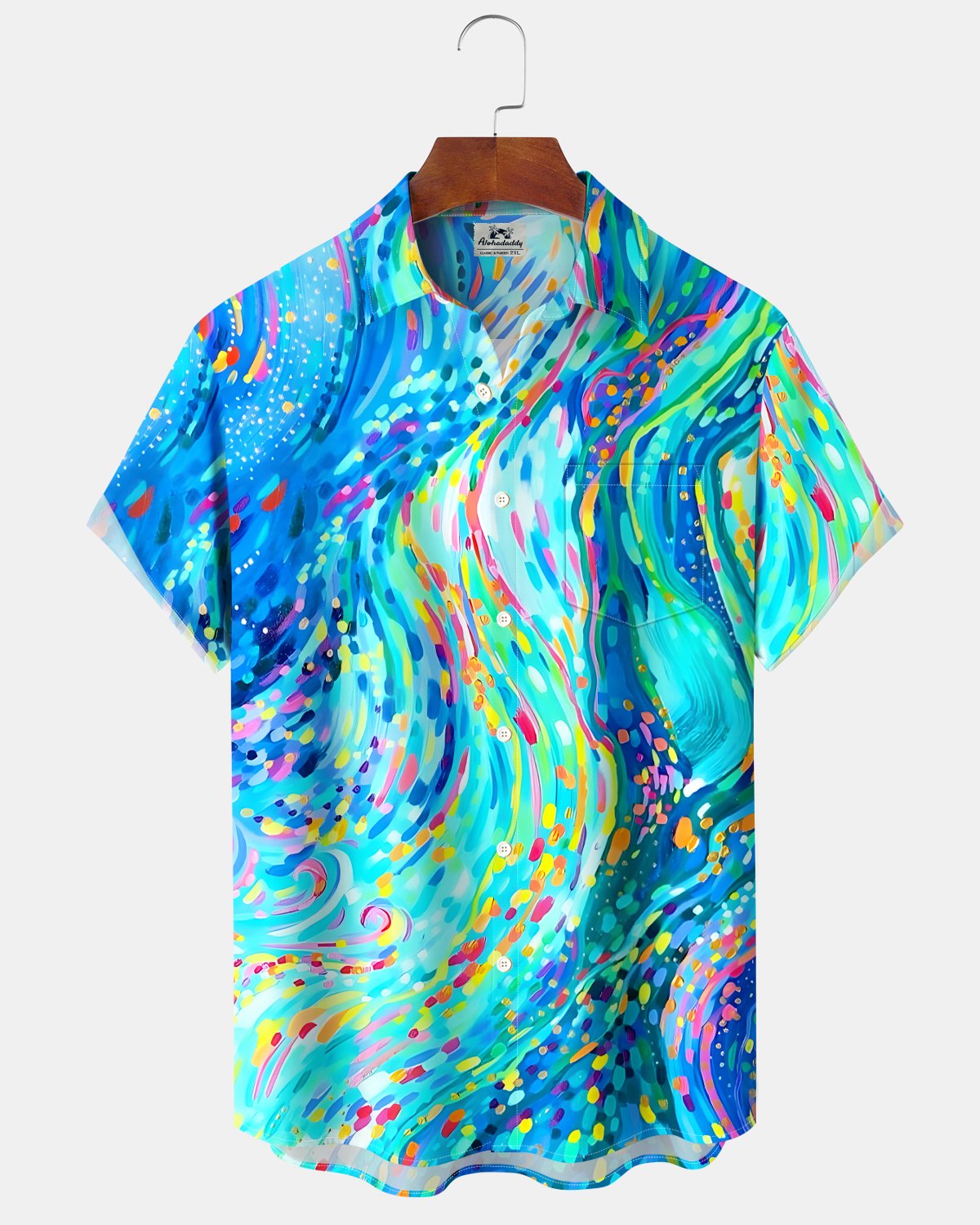 Camisa hawaiana elástica con estampado náutico para hombre Alohadaddy TIKI, camisa de camping con dibujos animados y bolsillo Aloha