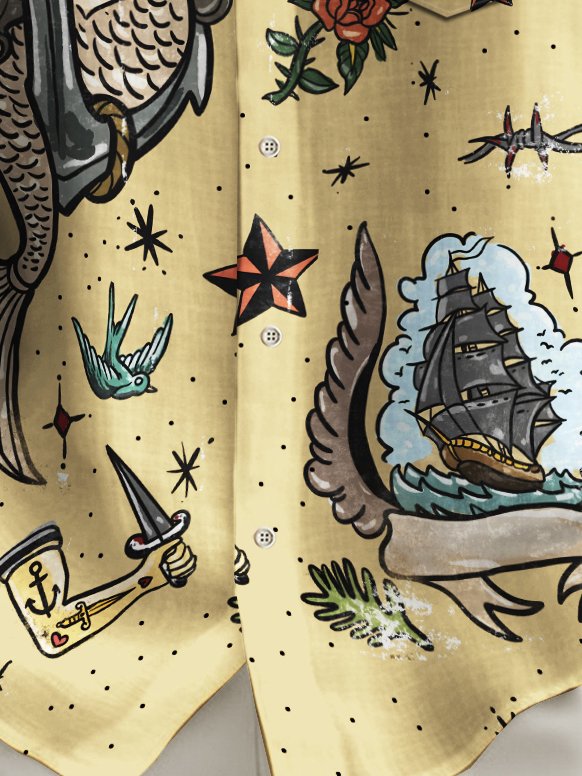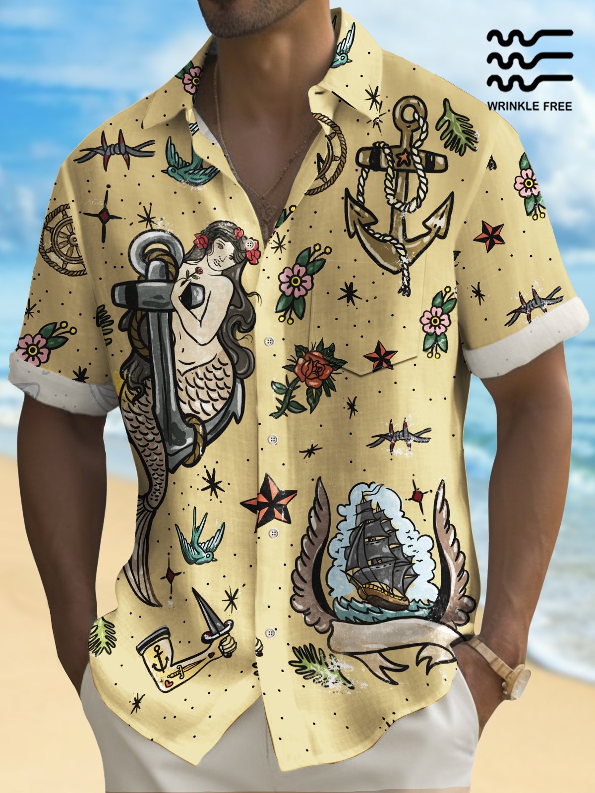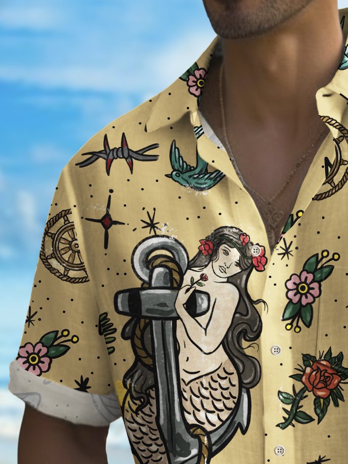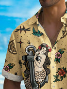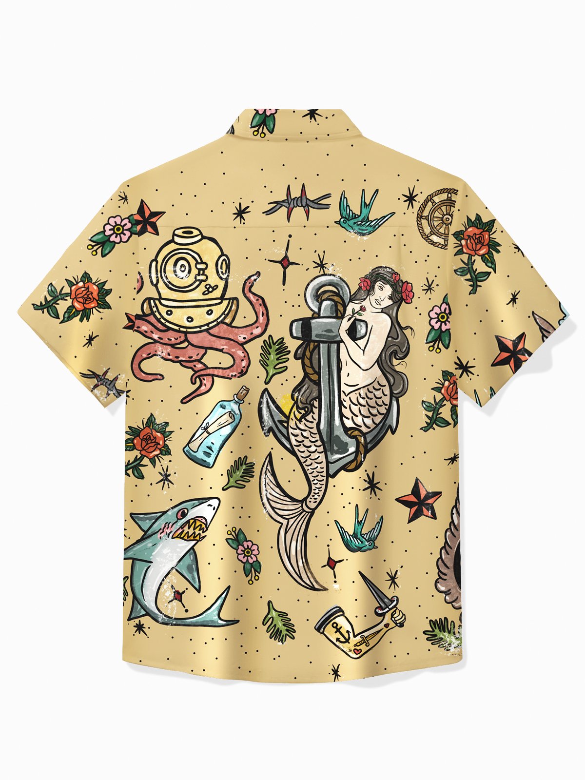 Camisa de bolsillo para acampar al aire libre, de secado rápido, elástica, con estampado de tatuaje de sirena vintage de Alohadaddy
