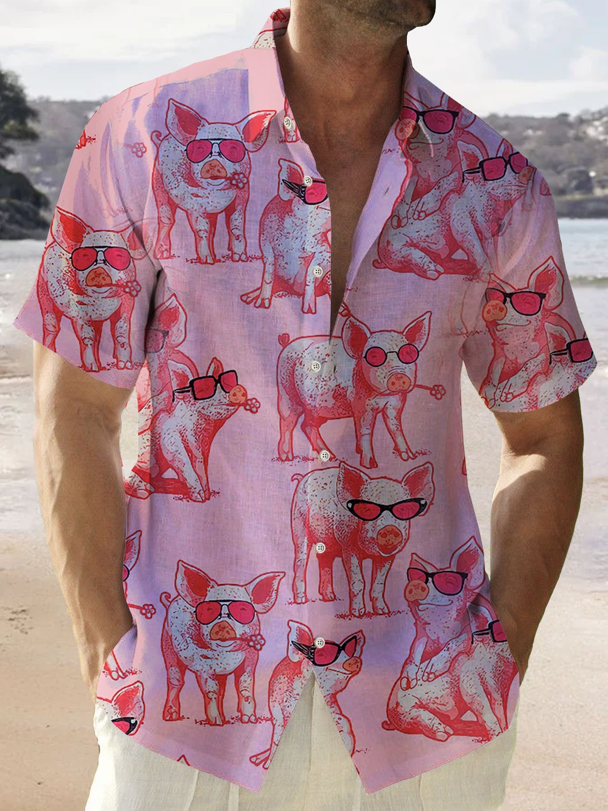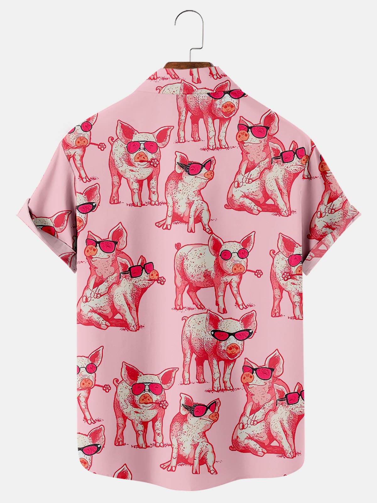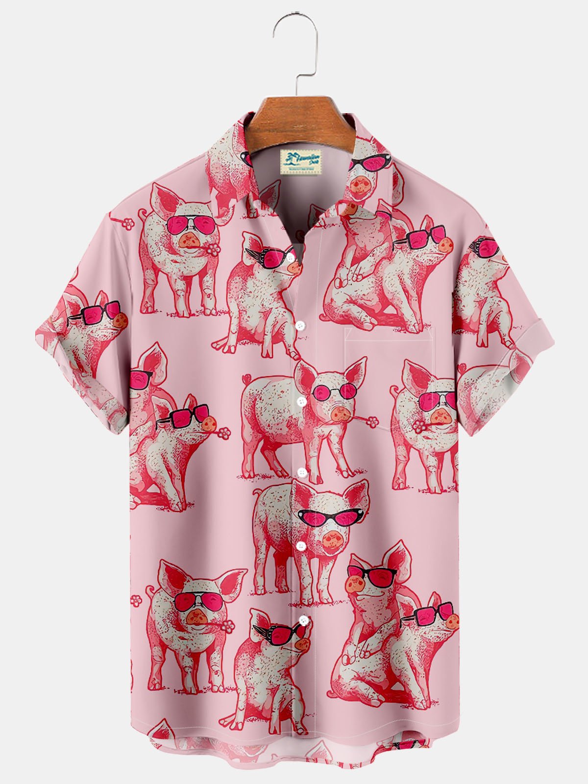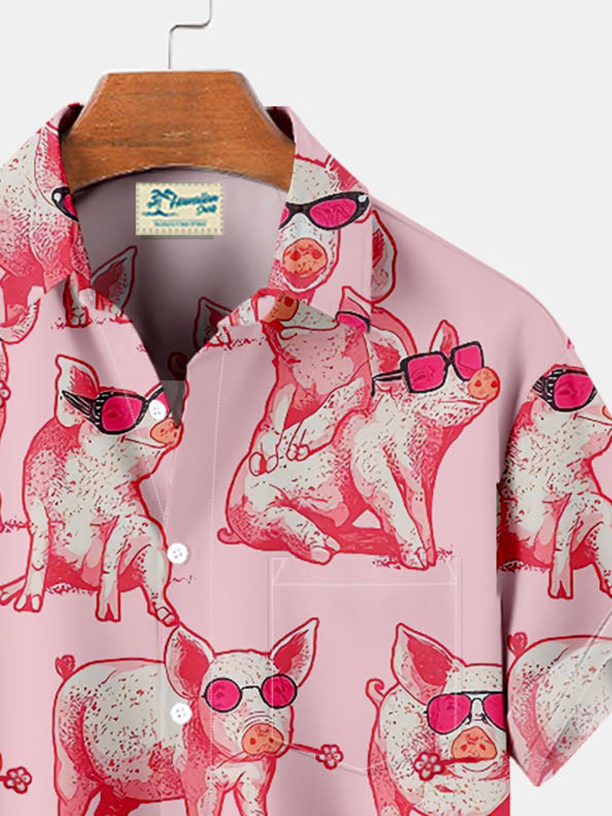 Camisa con botones y bolsillo para hombre con diseño de cerdo vintage de Alohadaddy
