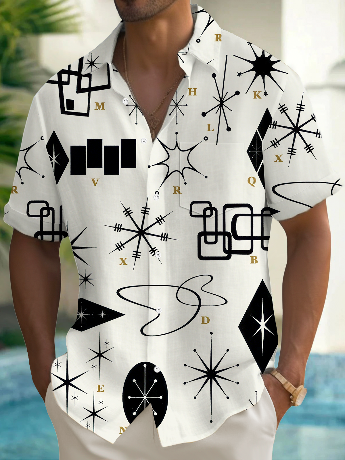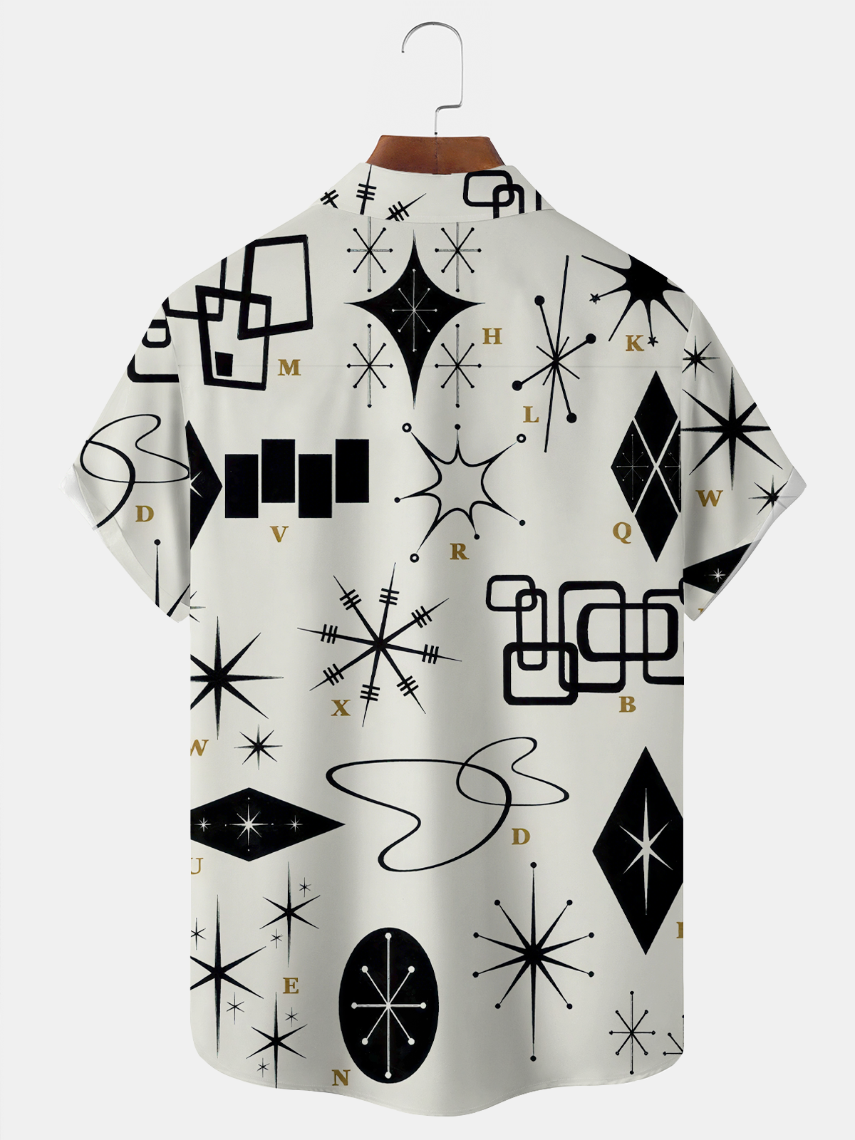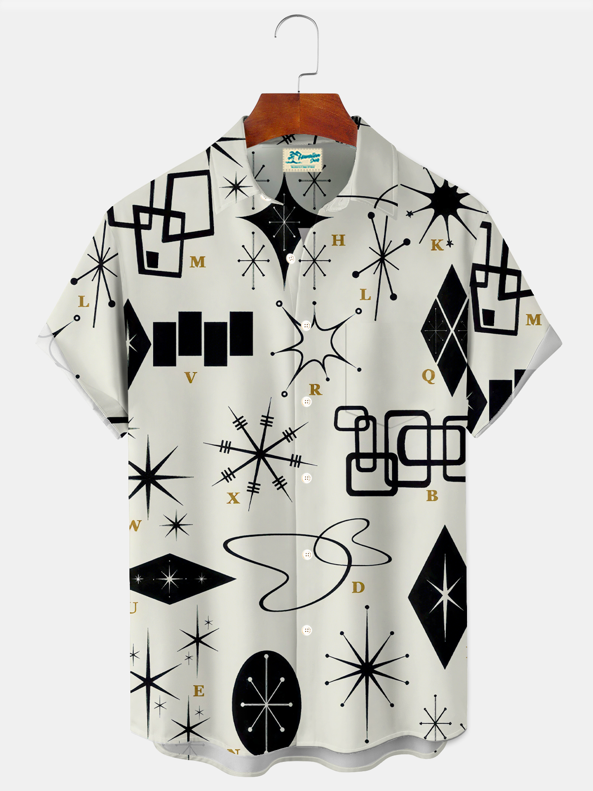 Royaura® Retro 1950s Mid-century Atomic Age Geometric Graphic Print Men's Button Pocket Short Sleeve Shirt Big & Tall