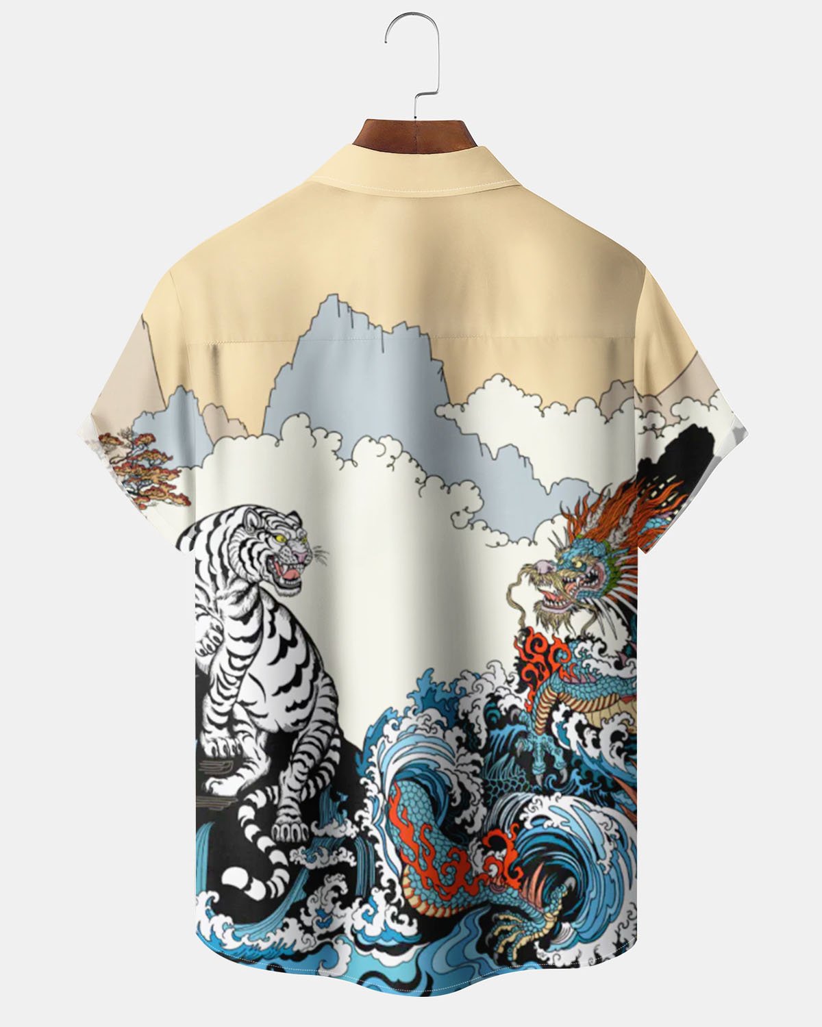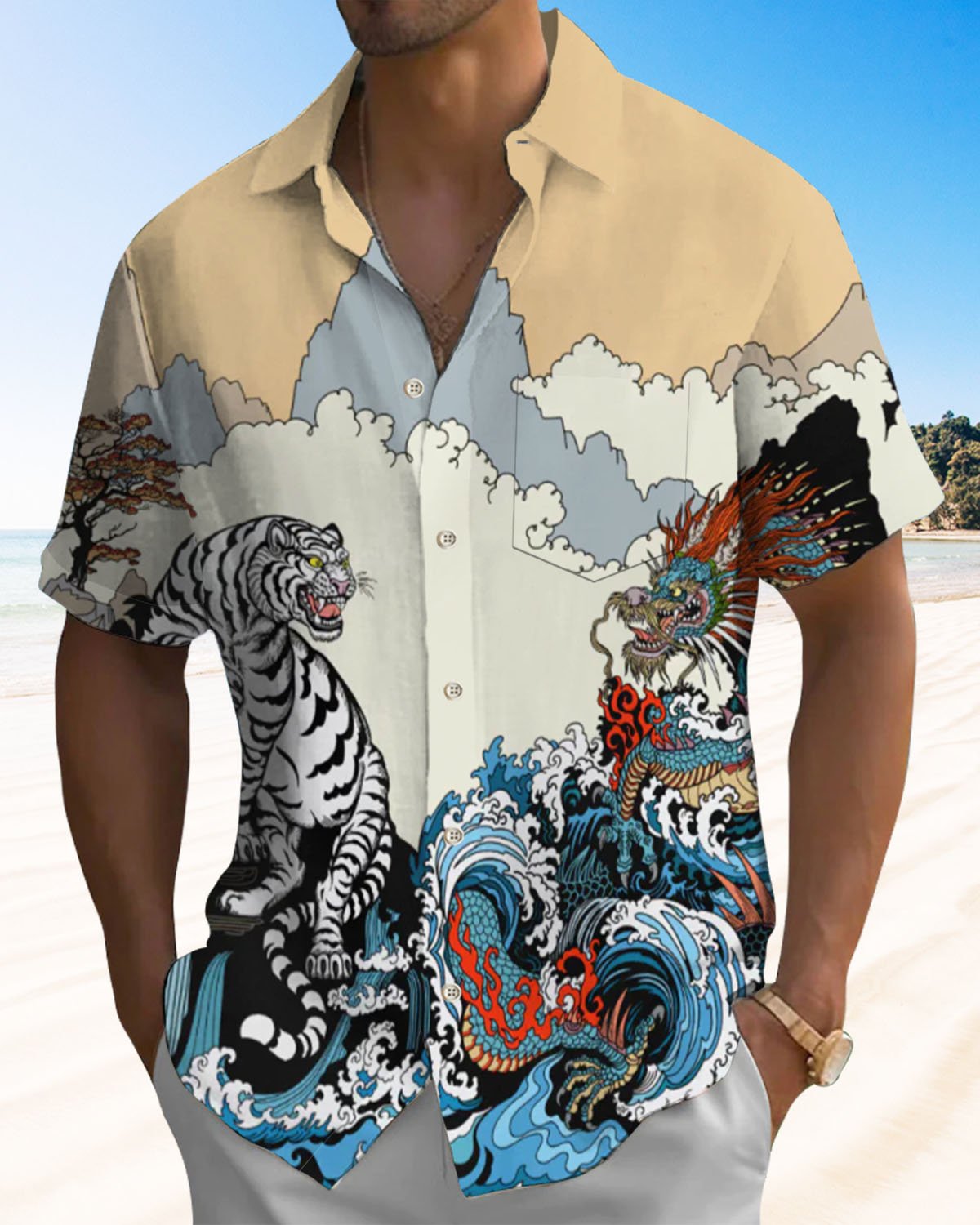 Alohadaddy® Basic Satin Satin Silk Printed Men's Button Pocket Satin Long-Sleeve Dress Shirt Big & Tall