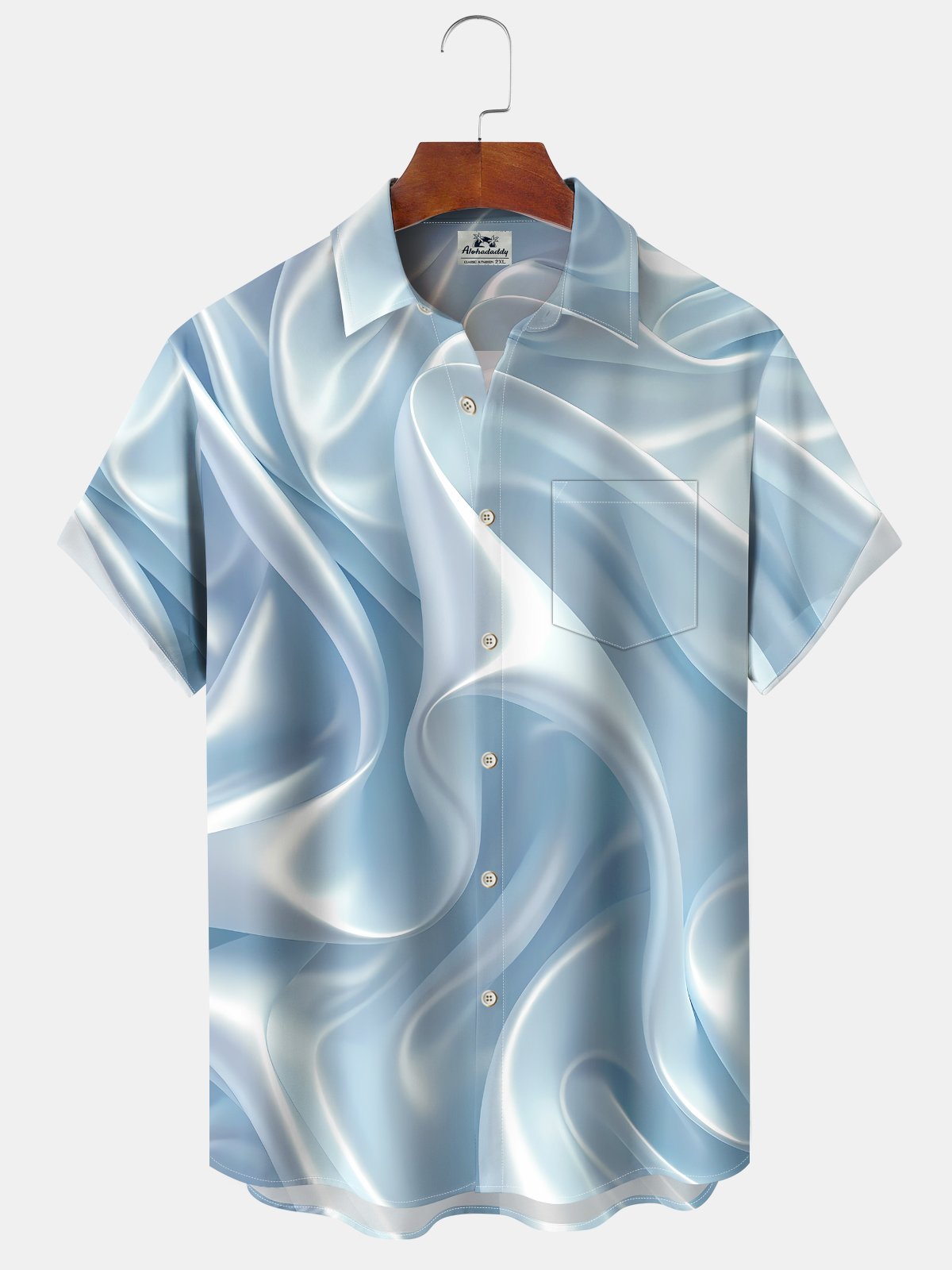 Alohadaddy® Casual Abstract Texture Art Print Pockets Large Size Stretch Men's Short Sleeve Shirt