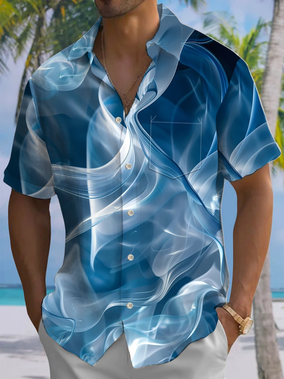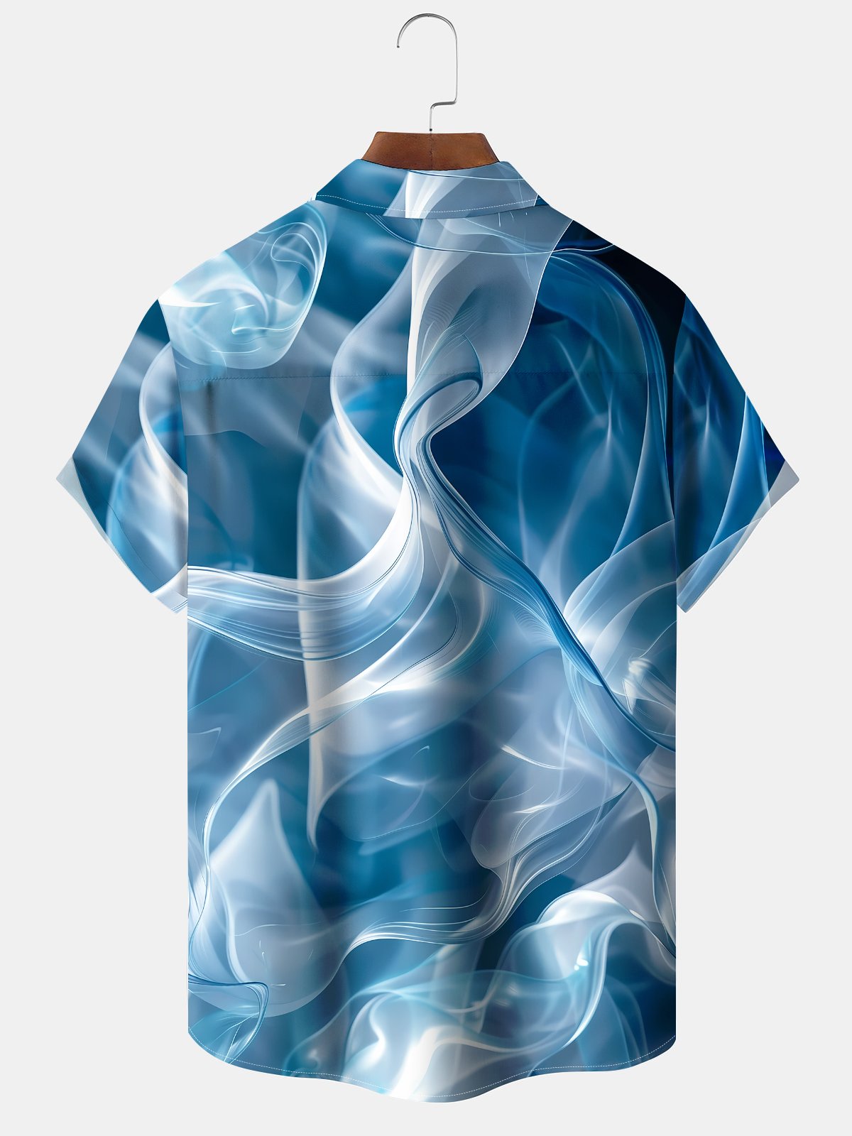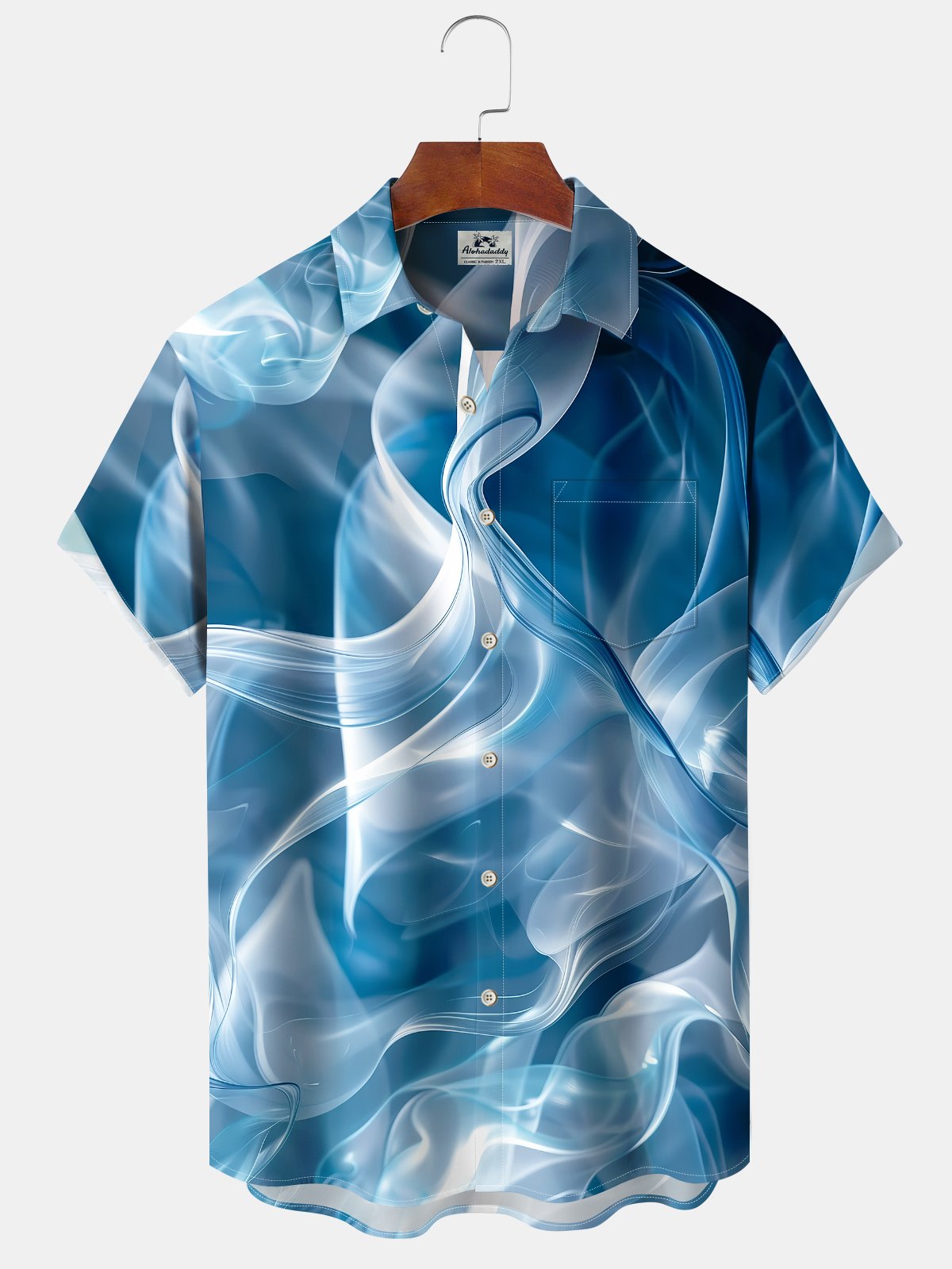 Alohadaddy® Casual Abstract Texture Chest Pocket Stretch Oversized Men's Short Sleeve Shirt