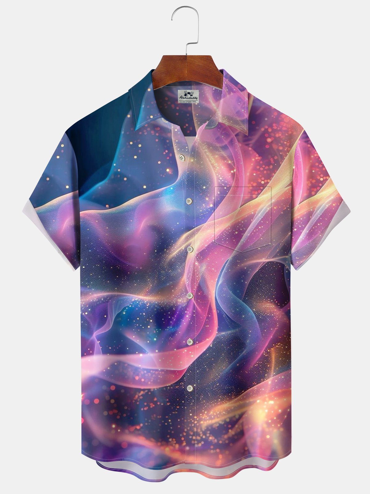 Alohadaddy® Casual Abstract Texture Chest Pocket Stretch Oversized Men's Short Sleeve Shirt