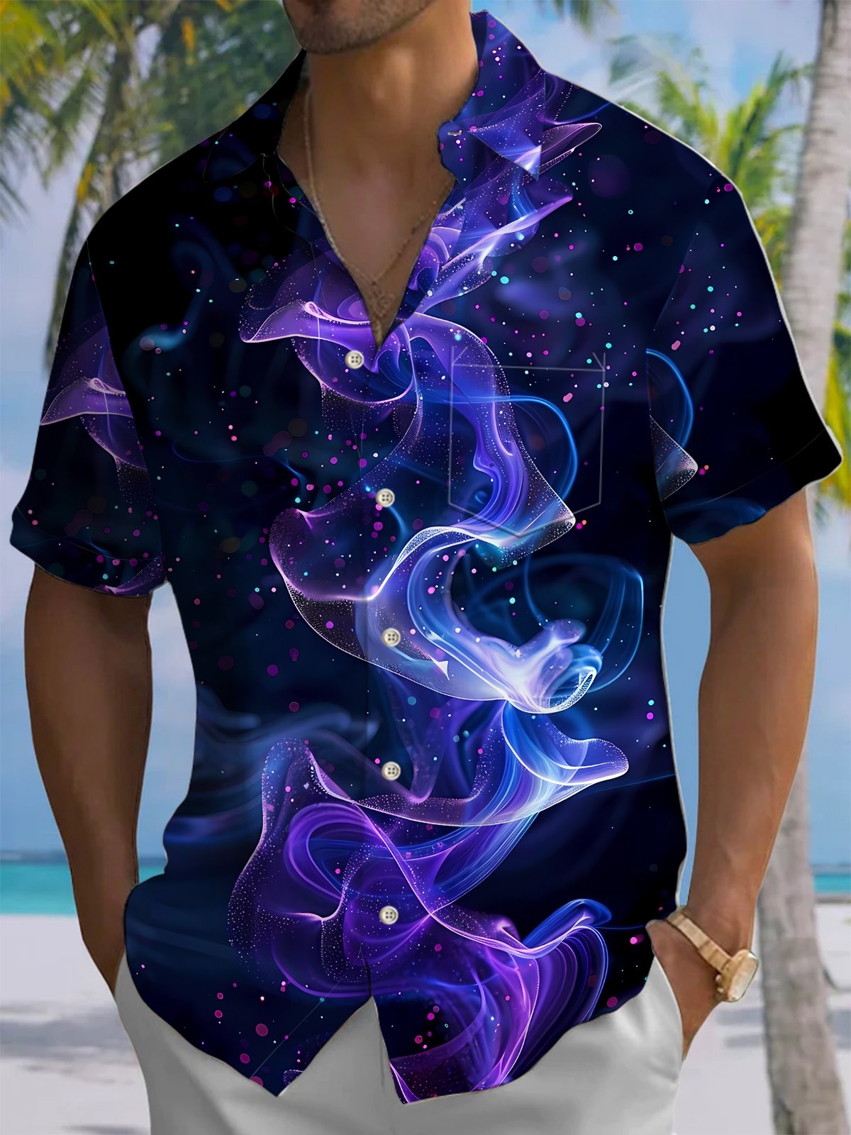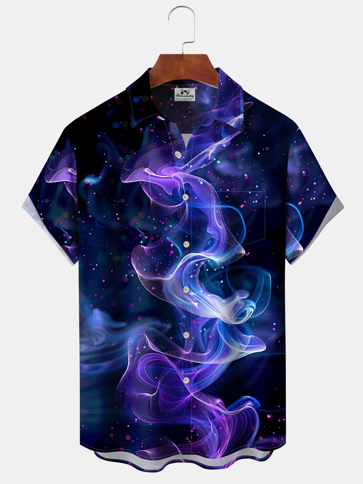 Alohadaddy® Casual Abstract Texture Pockets Moisture Wicking Large Size Stretch Men's Short Sleeve Shirt