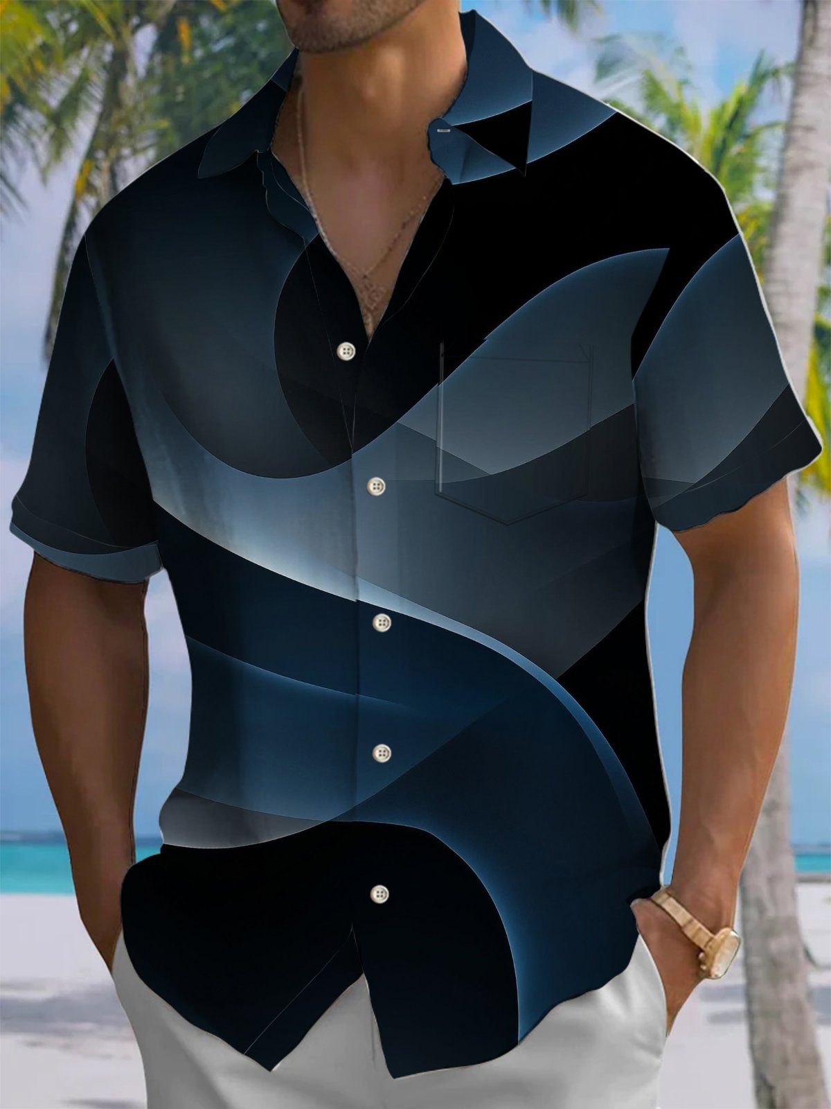 Alohadaddy® Casual Abstract Textured Art Print Chest Pocket Men's Short Sleeve Shirt Big & Tall