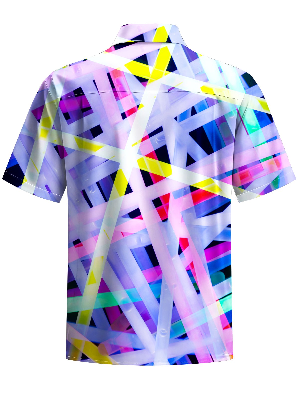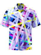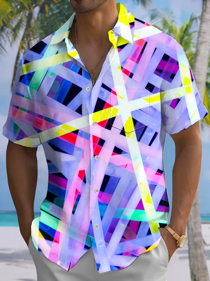 Alohadaddy® Casual Geometric Stripe Art Print Chest Pocket Men's Short Sleeve Shirt Big & Tall