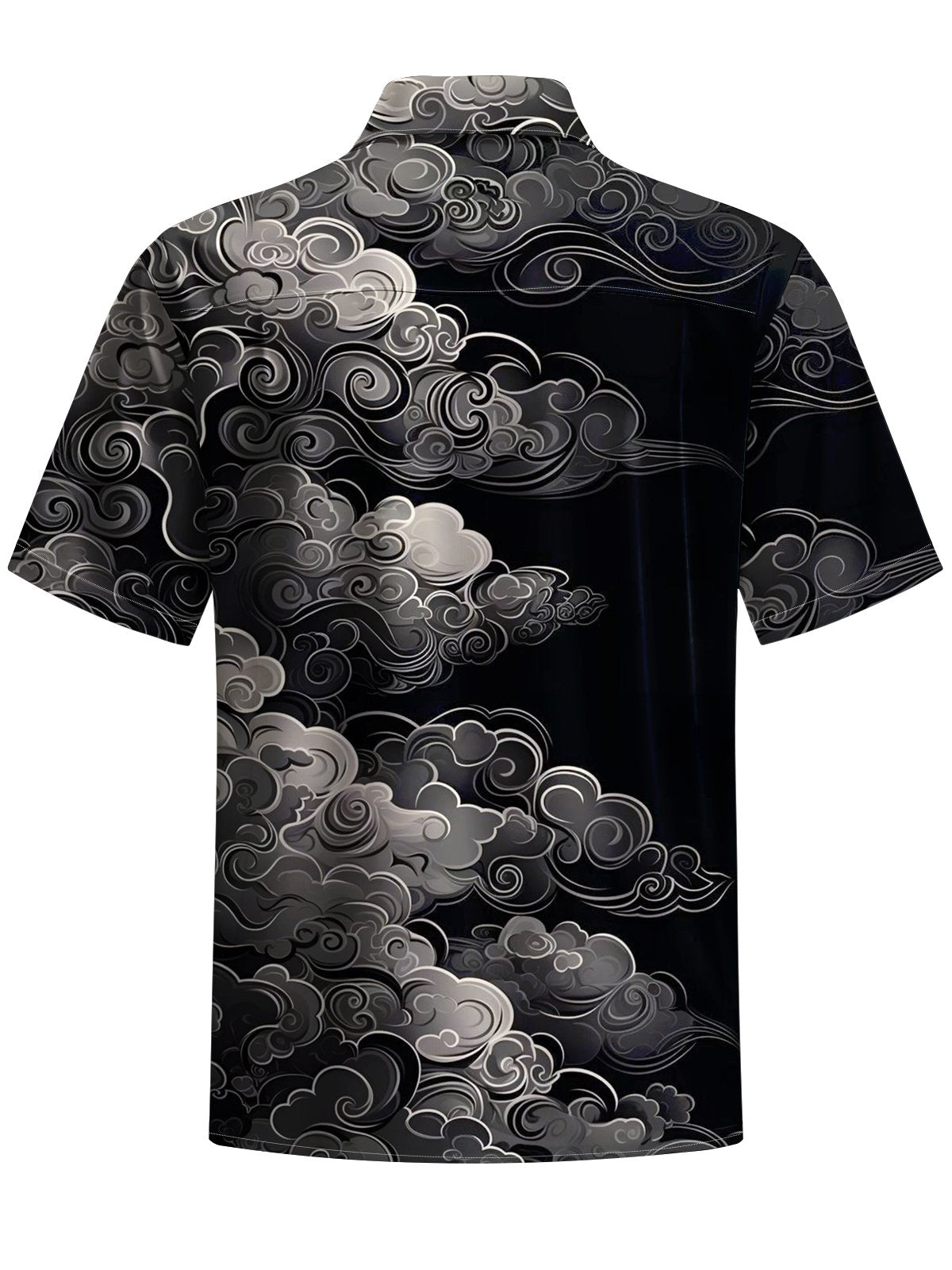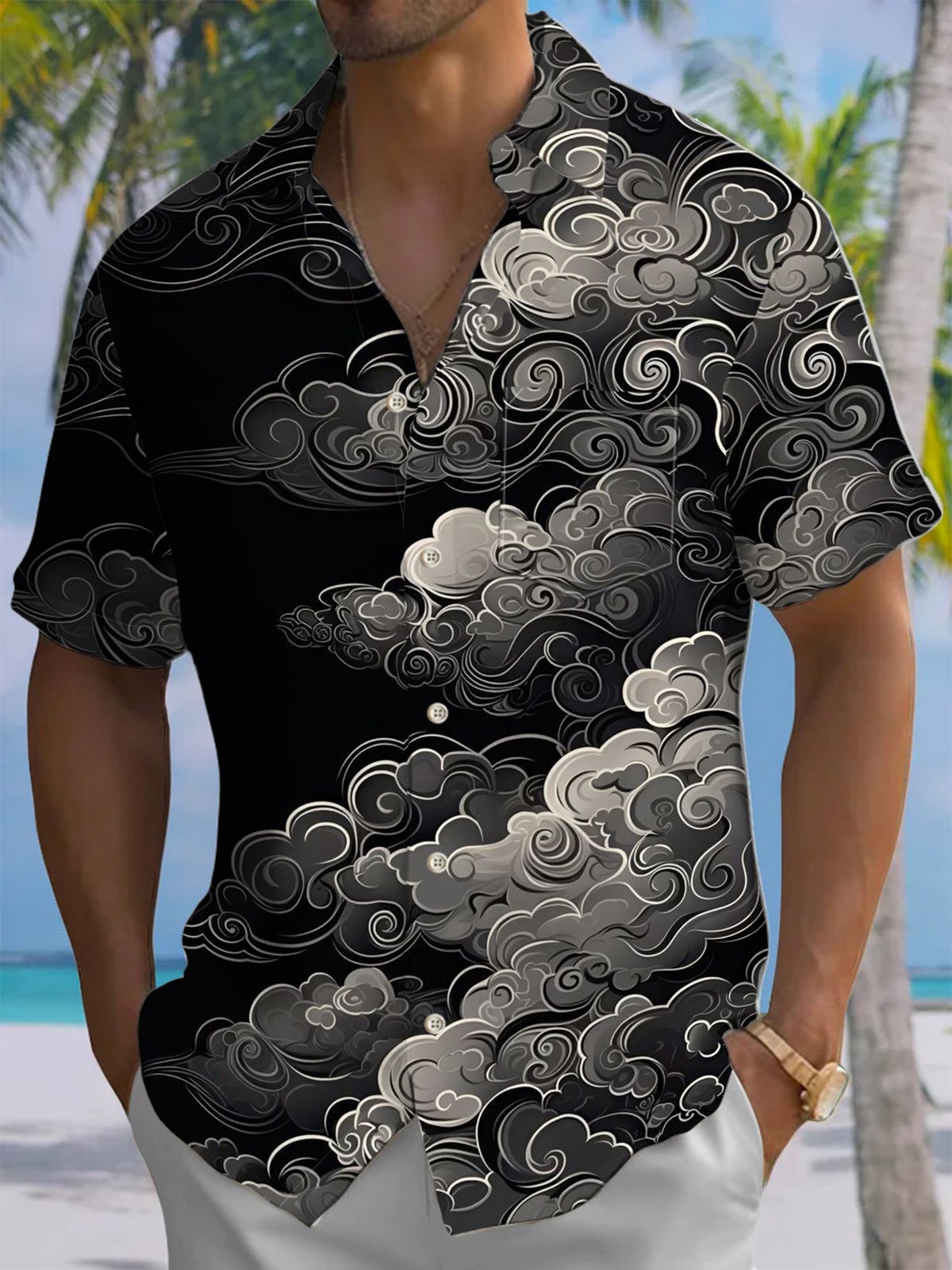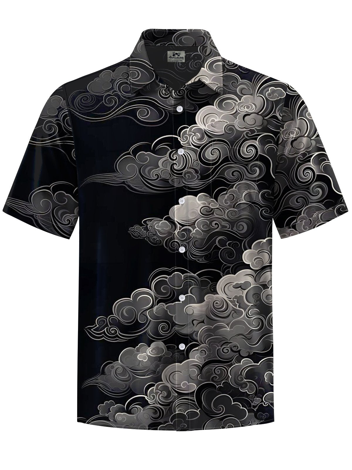 Alohadaddy® Casual Moire Ukiyo-e Print Art Chest Pocket Men's Short Sleeve Shirt Big & Tall