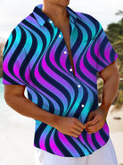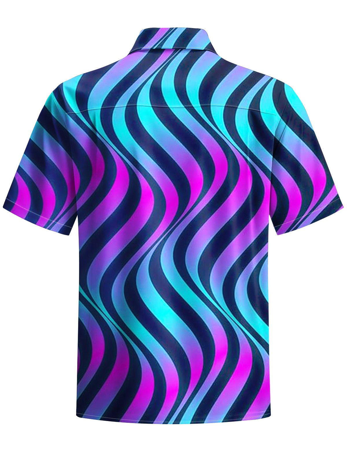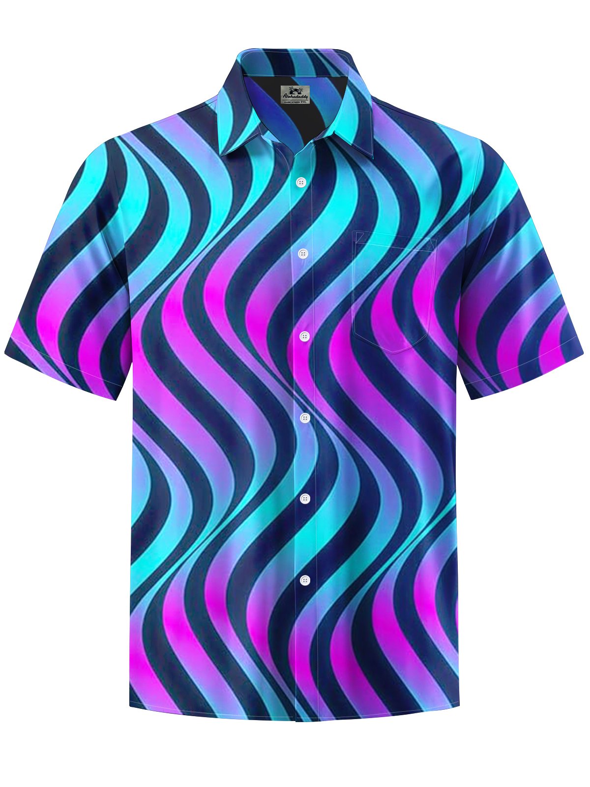 Alohadaddy® Casual Stripe Ombre Printed Artwork Chest Pocket Men's Short Sleeve Shirt Big & Tall