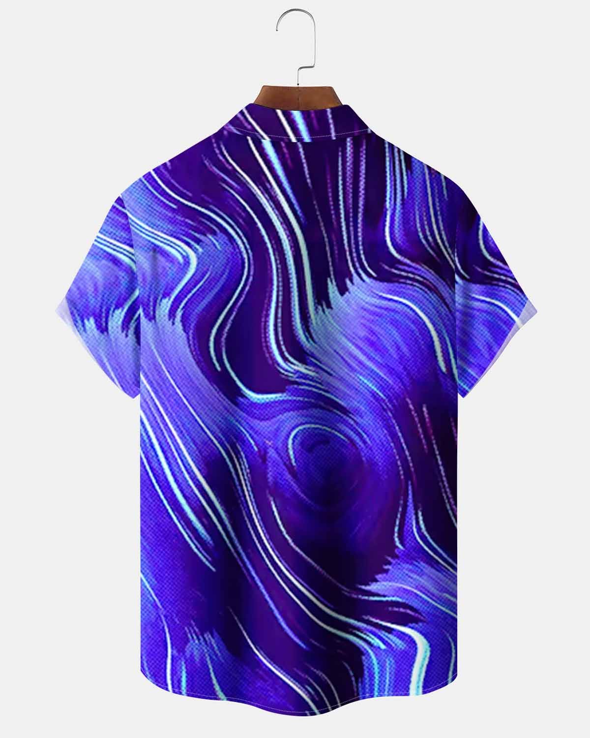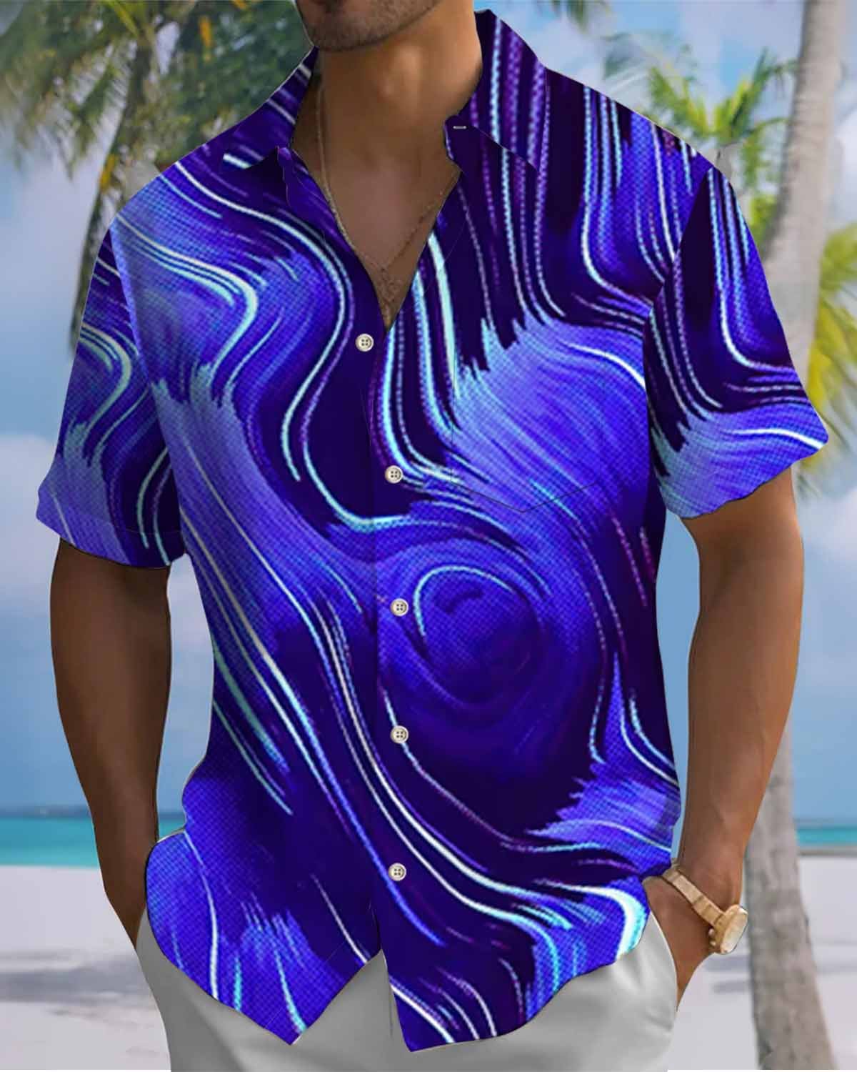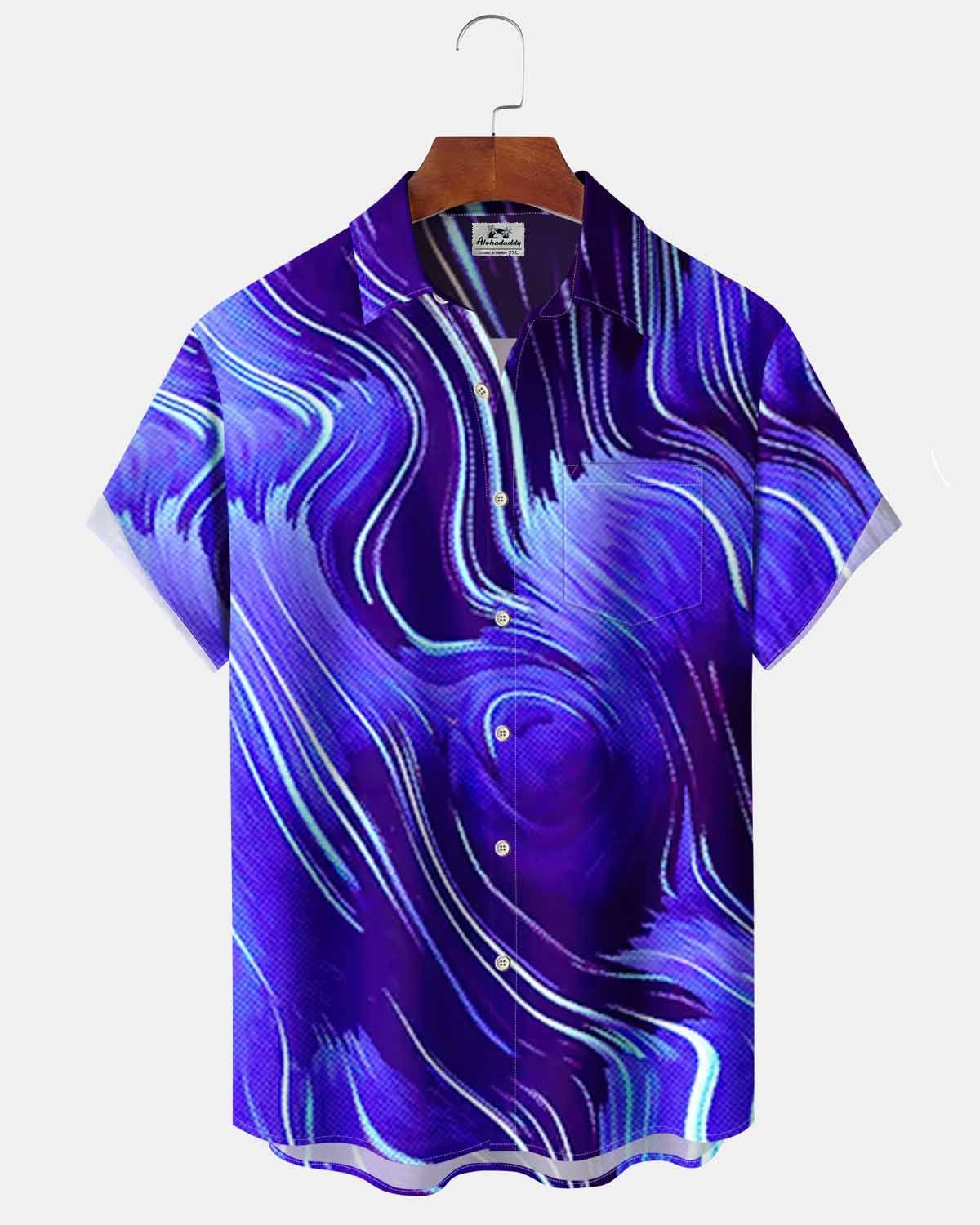 Alohadaddy® Casual Striped Art Print Cardigan with Pockets and Buttons for Men - Short Sleeve Shirt Big & Tall