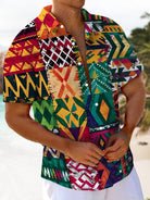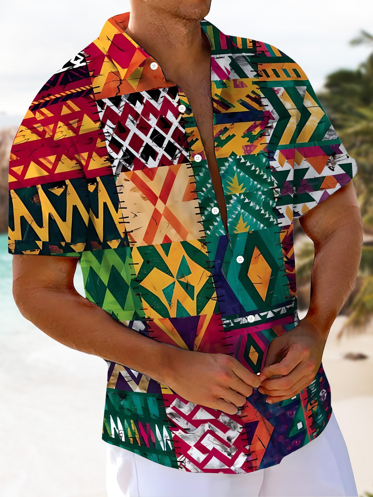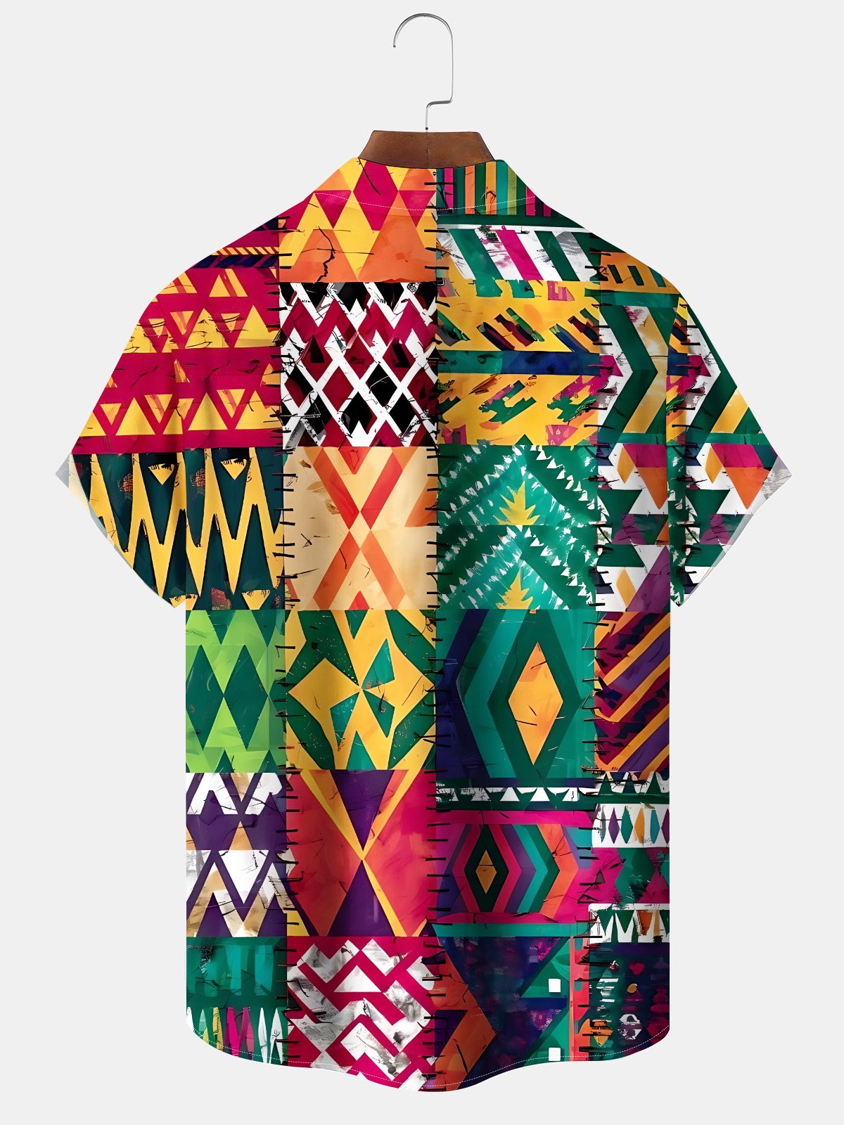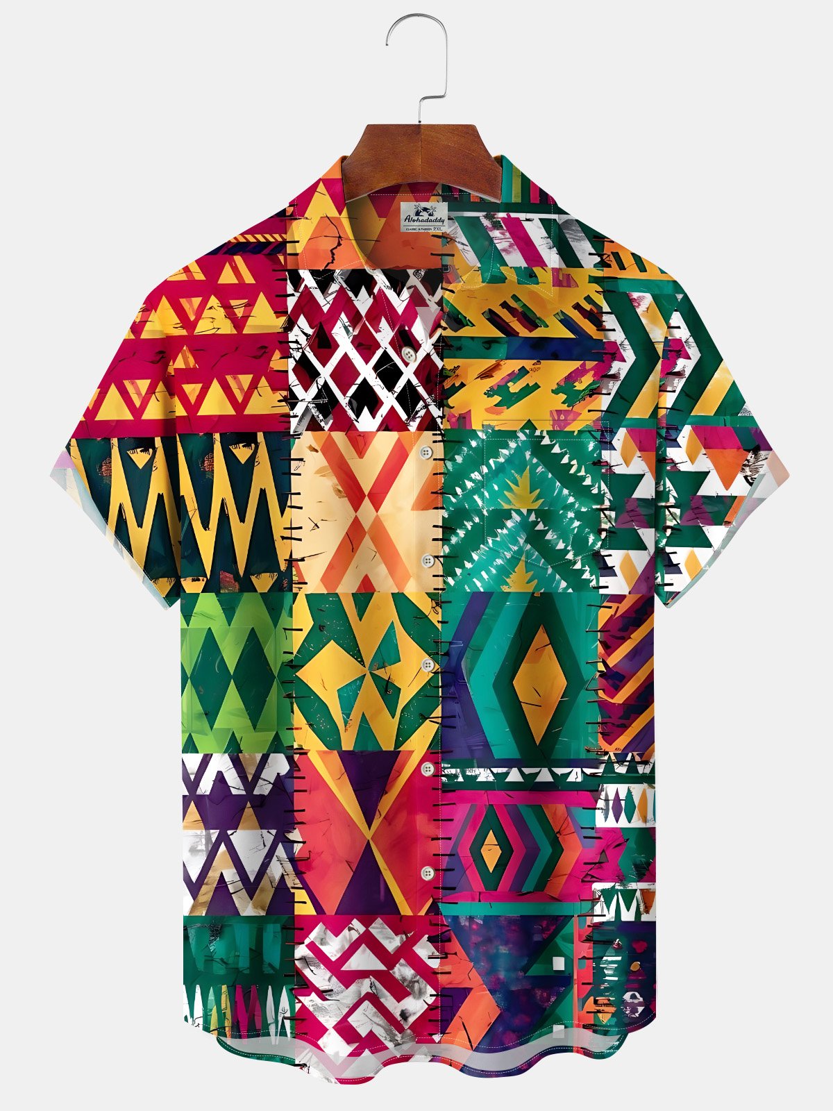 Alohadaddy Moisture Wicking Geometric Democratic Graphics Print Art Chest Pocket Stretch Hawaiian Short Sleeve Shirt