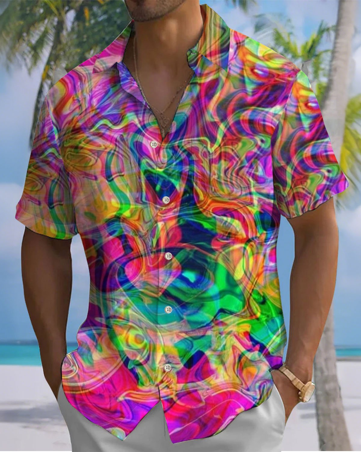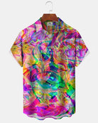 Alohadaddy® Casual Abstract Print Art Pocket Button Men's Short-Sleeve Shirt Big & Tall
