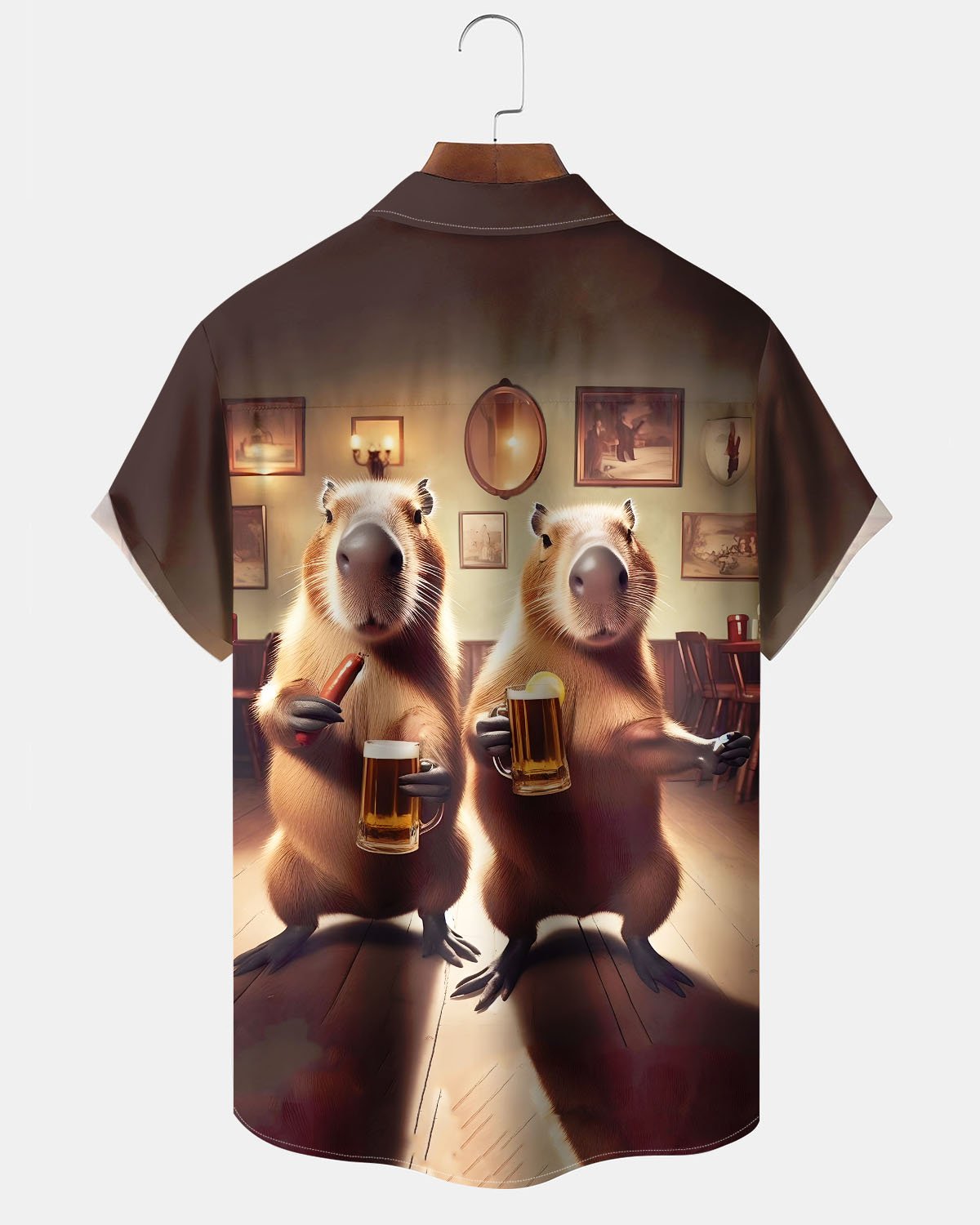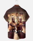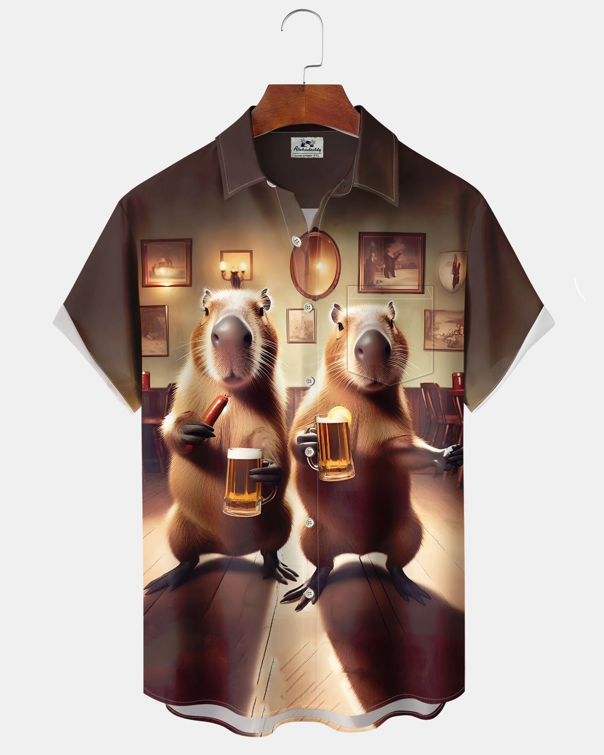 Alohadaddy® Casual and Fun Groundhog Print Art Button-Down Short-Sleeve Shirt with Pockets for Men Big & Tall