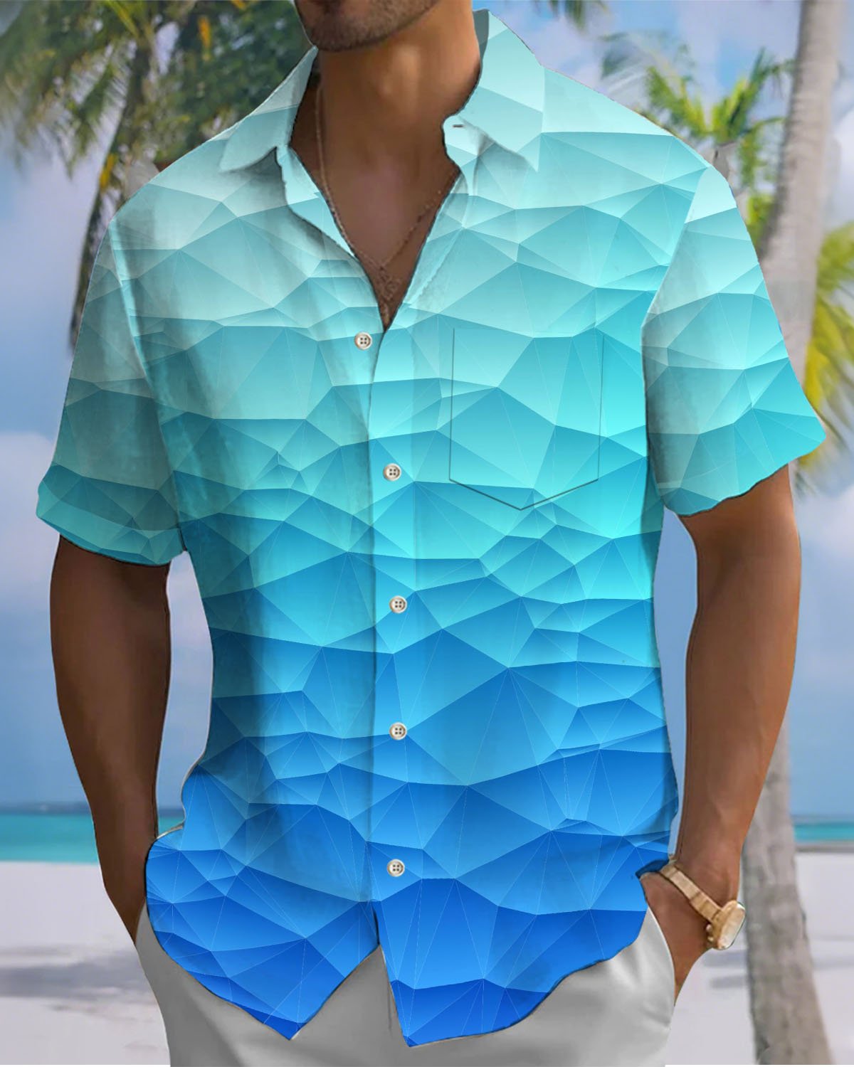 Alohadaddy® Casual Gradient Geometric Print Art Men's Short-Sleeve Shirt with Pockets and Buttons Big & Tall