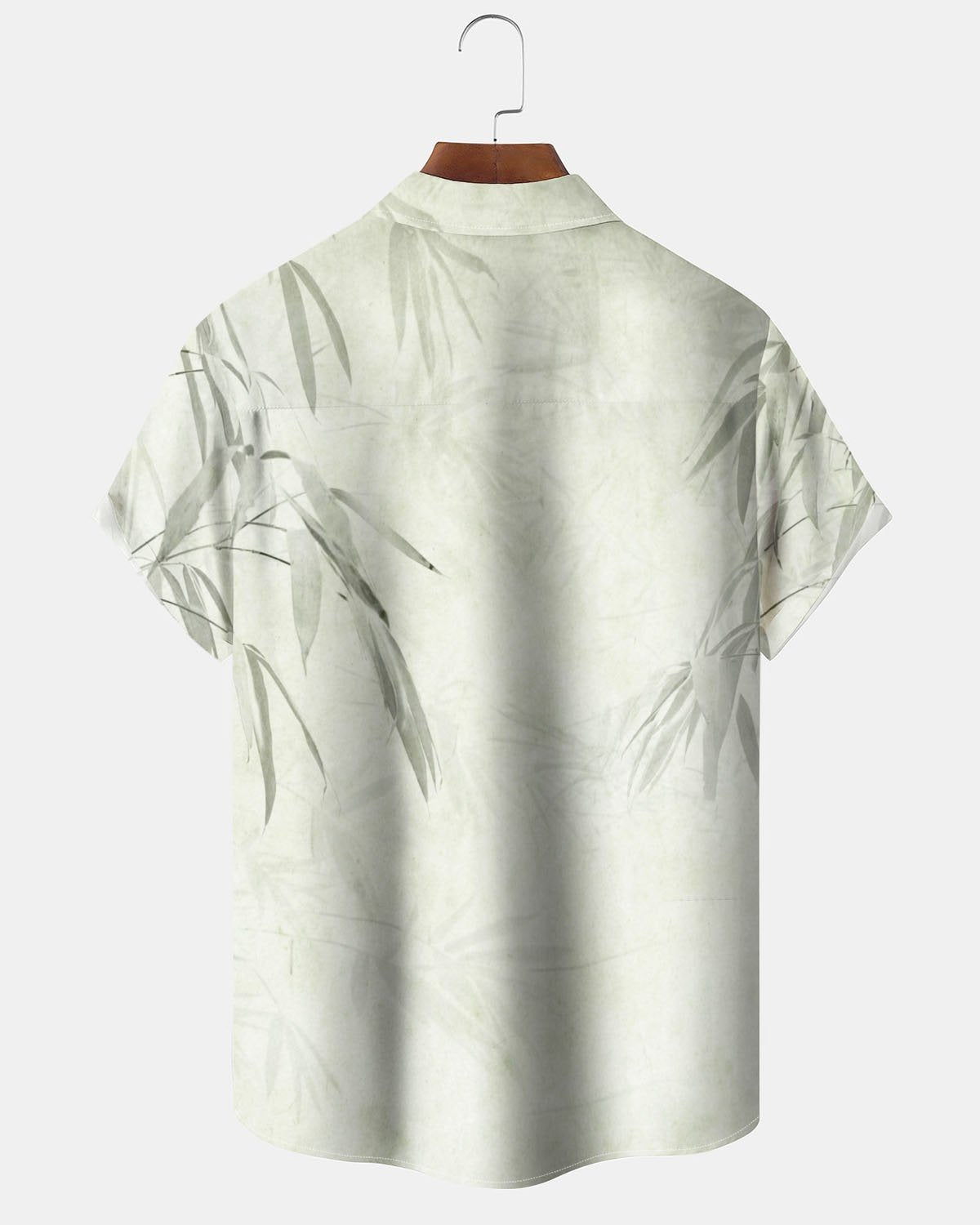 Alohadaddy® Casual Painting Bamboo Print Art Button-Down Pocket Men's Short-Sleeve Shirt Big & Tall