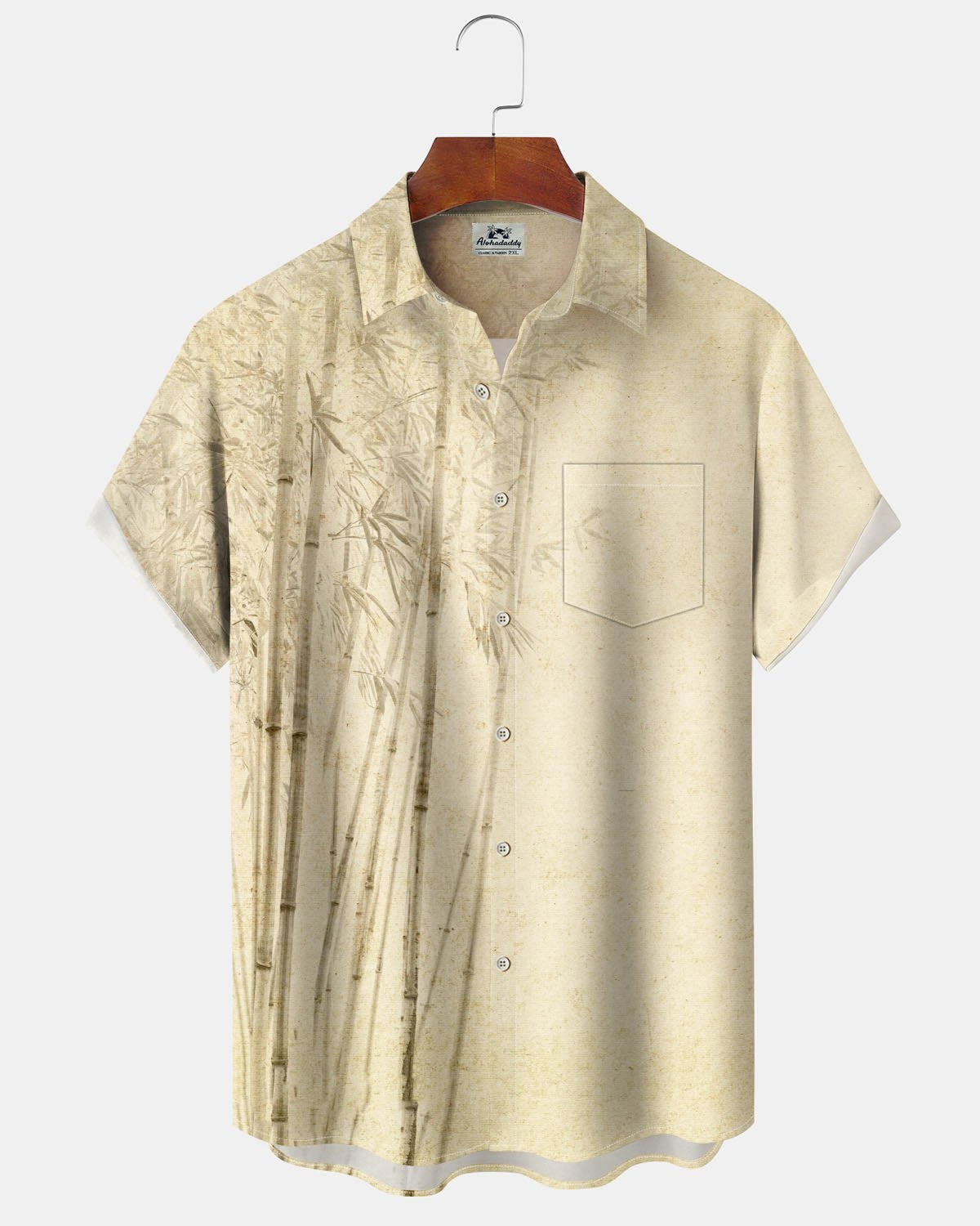 Alohadaddy® Casual Painting Bamboo Print Art Button-Down Pocket Men's Short-Sleeve Shirt Big & Tall