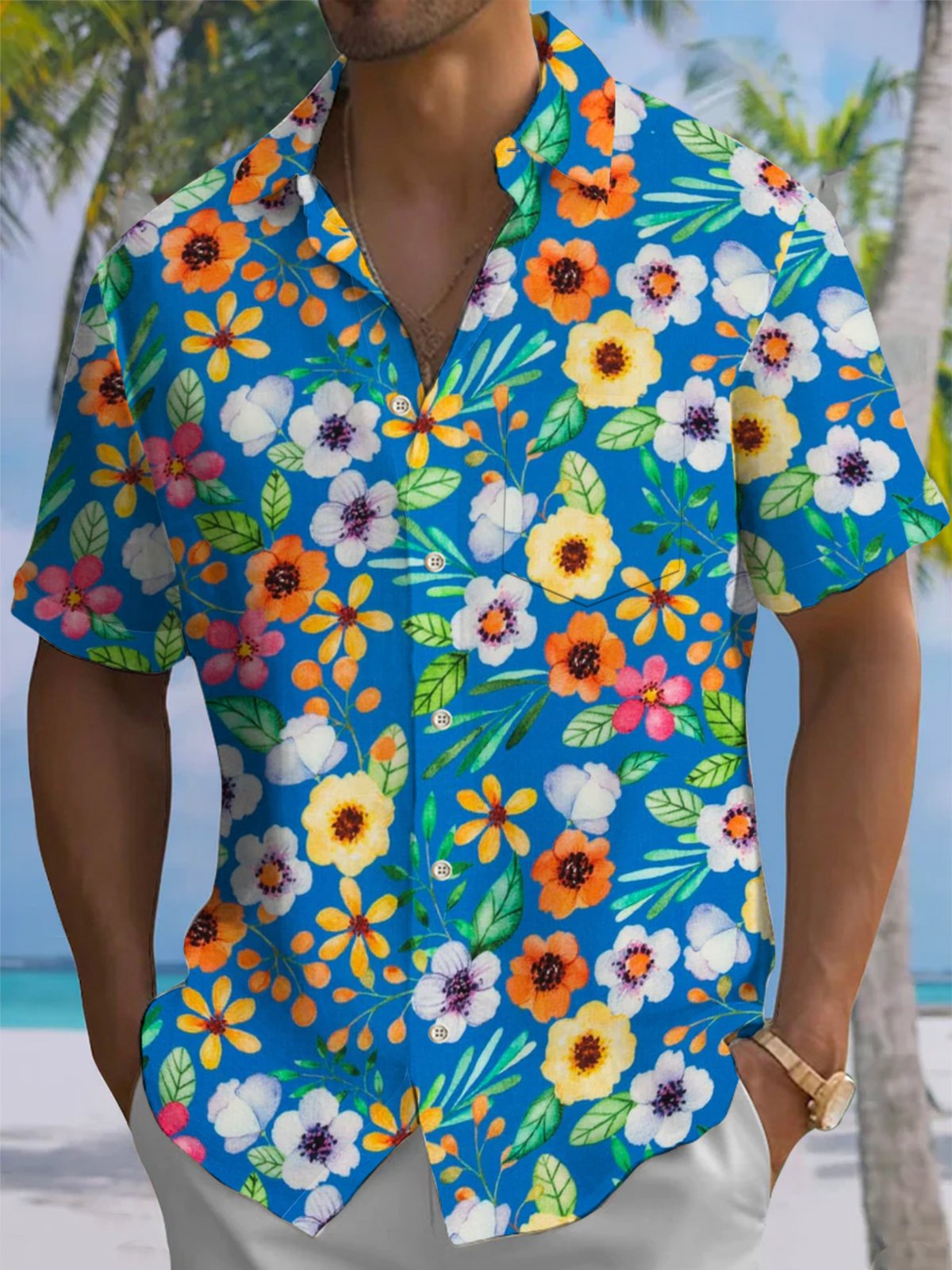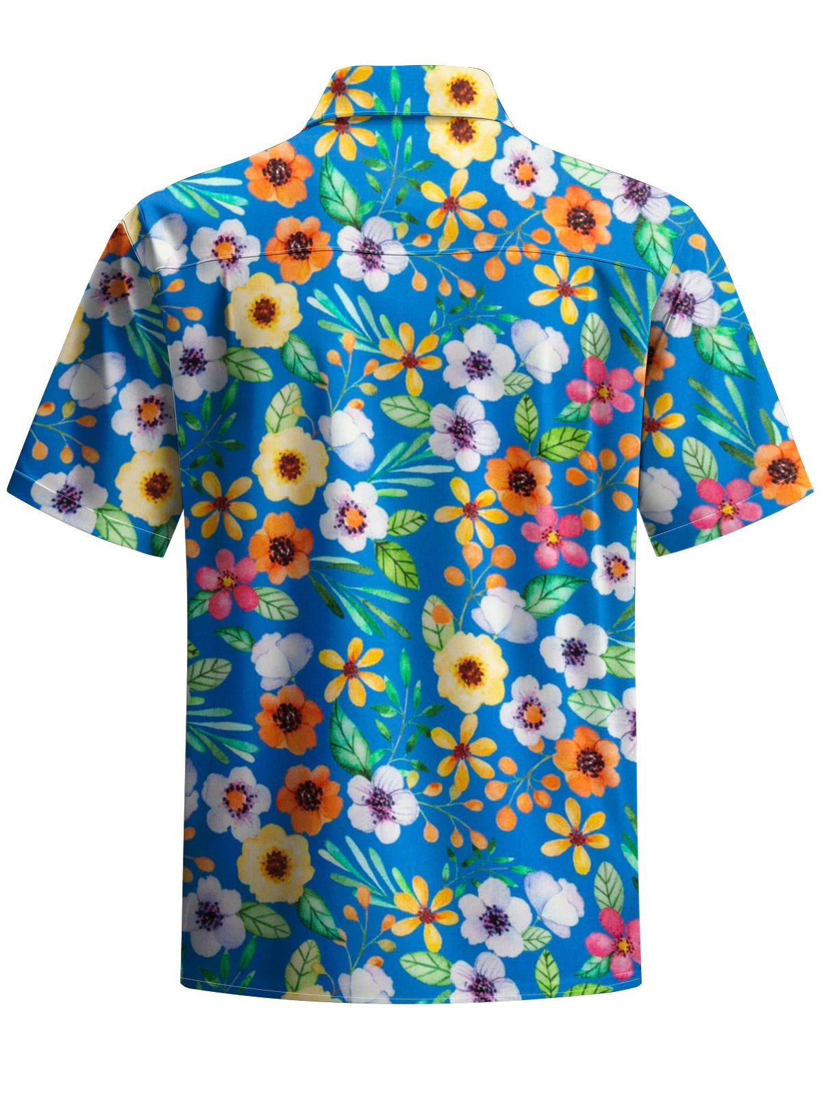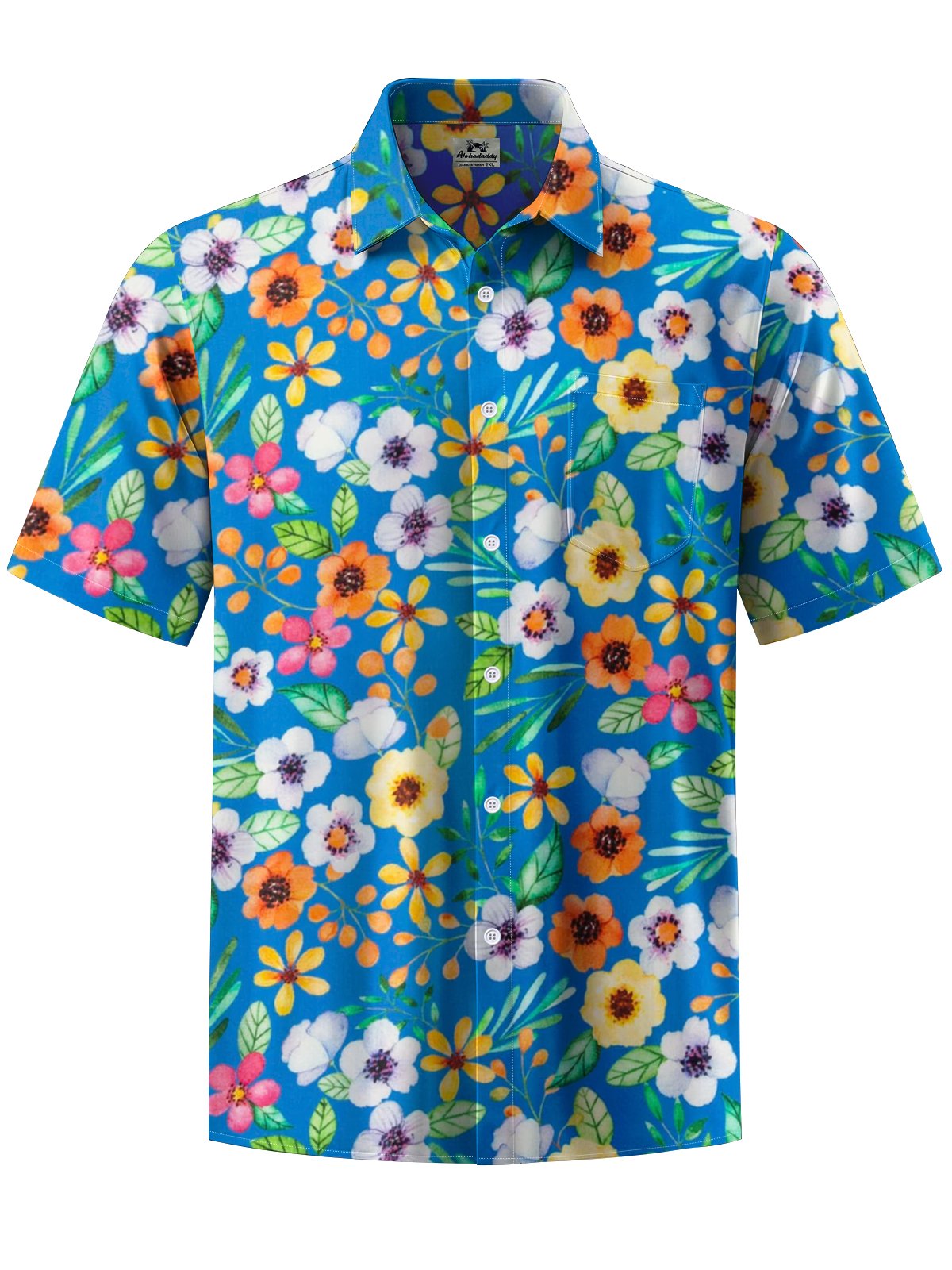 Alohadaddy® Hawaiian Flower Print Button Pocket Stretch Men's Short Sleeve Shirt Big & Tall