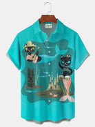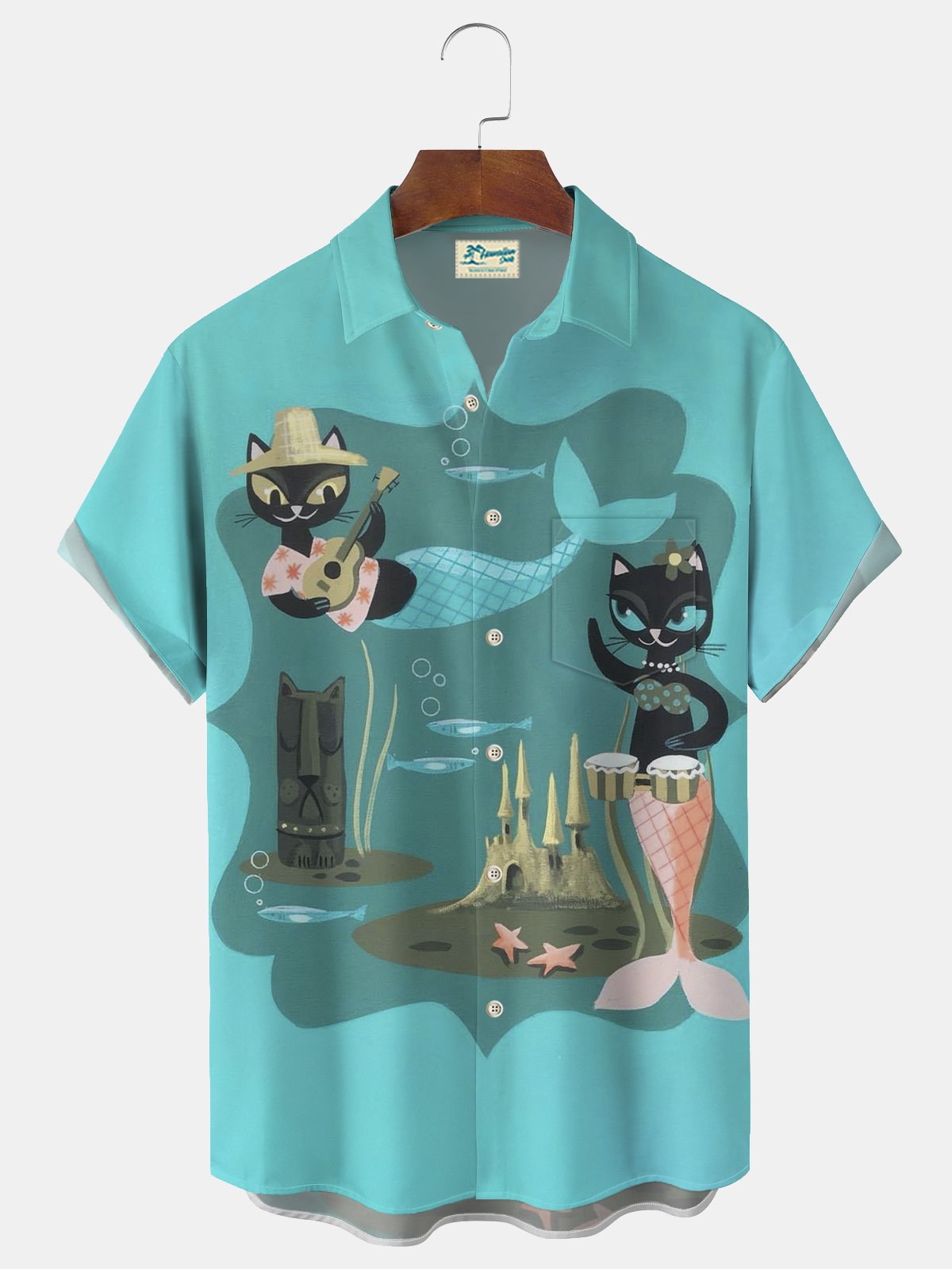Alohadaddy® Medieval Geometric Mermaid Cat Print Men's Pocket Short Sleeve Shirt Big & Tall