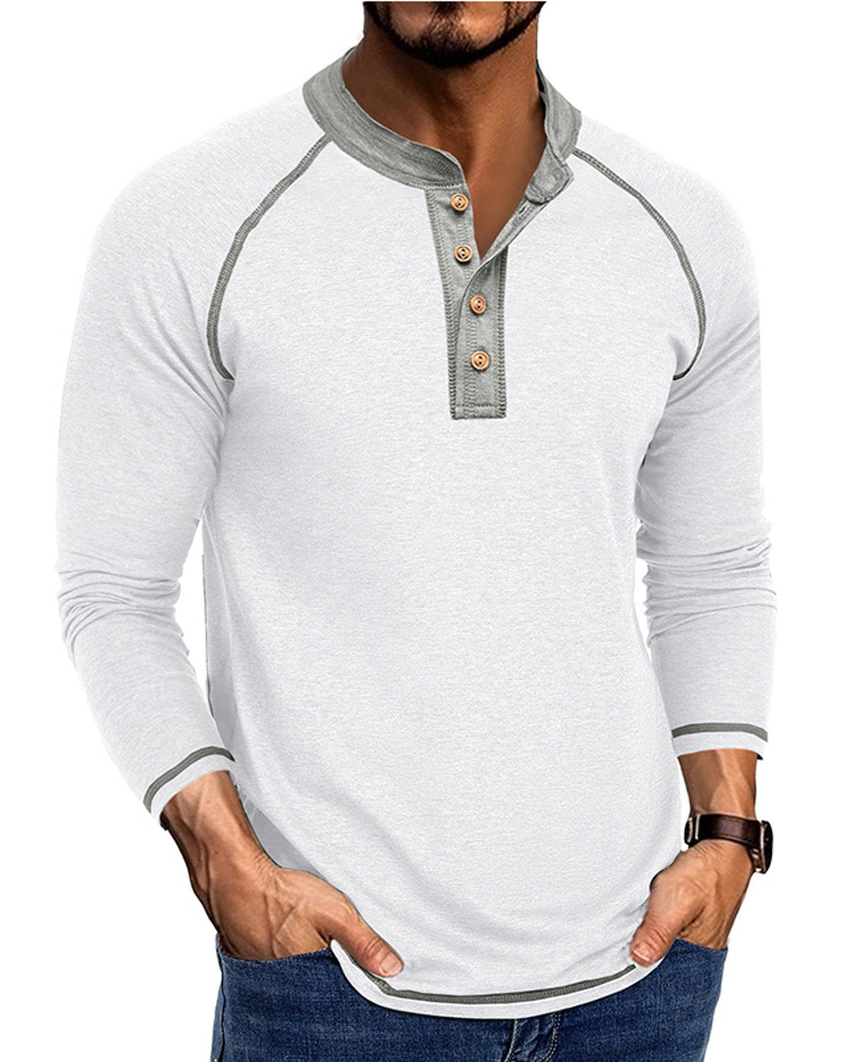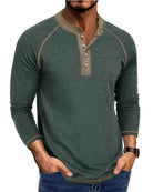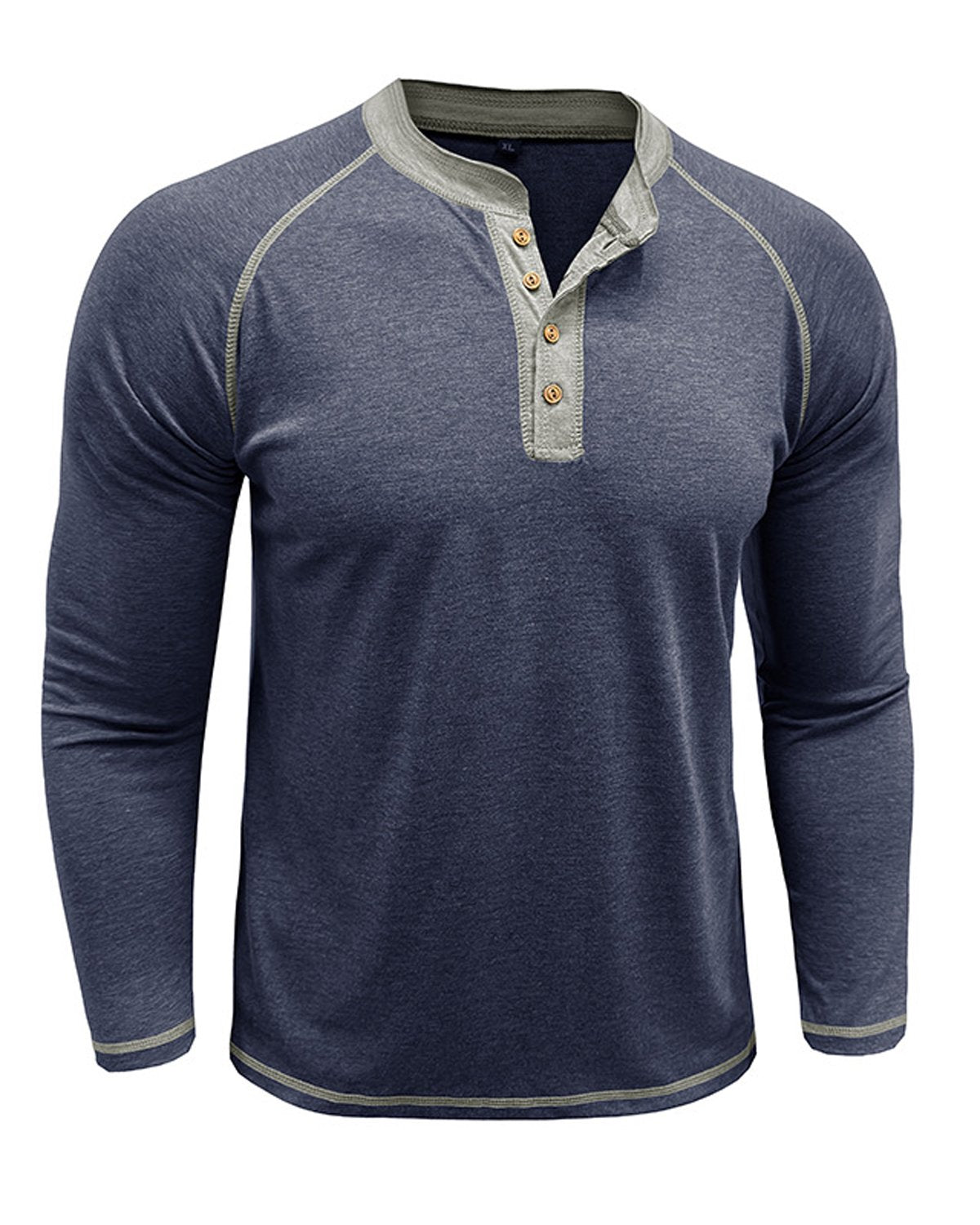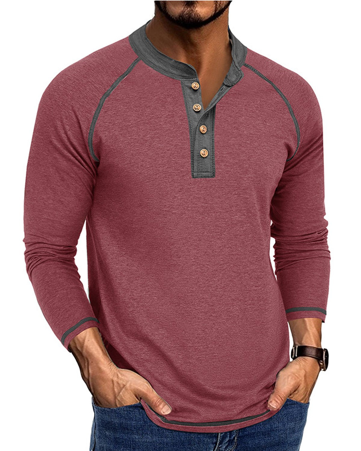 Alohadaddy® Men's Basic Solid Color Long-Sleeve Henley Polo Shirt