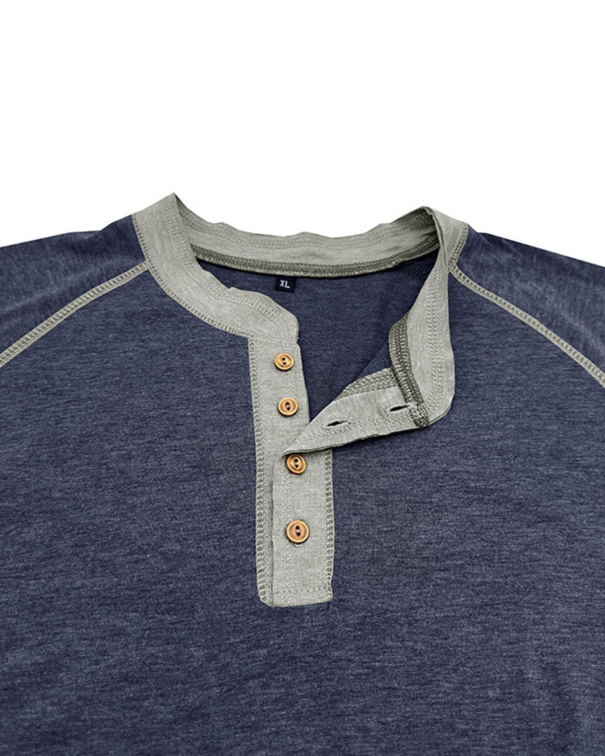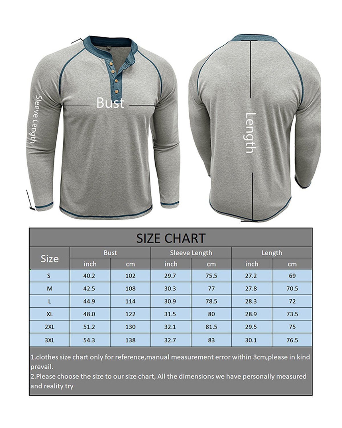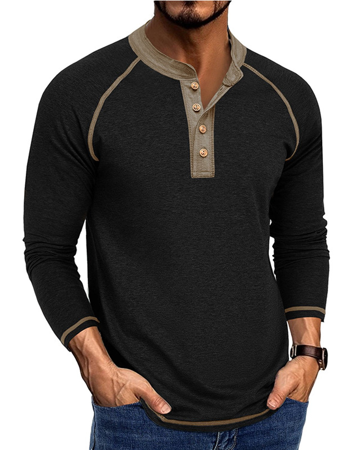 Alohadaddy® Men's Basic Solid Color Long-Sleeve Henley Polo Shirt