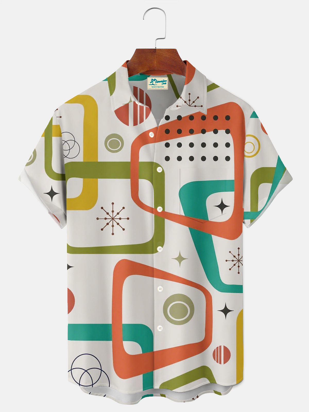 Alohadaddy® Retro 1950s Mid-century Atomic Age Geometric Graphic Print Men's Button Pocket Short Sleeve Shirt Big & Tall