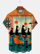 Alohadaddy® Retro Cat Cocktail Party Print Men's Lapel Short Sleeve Shirt Big & Tall