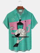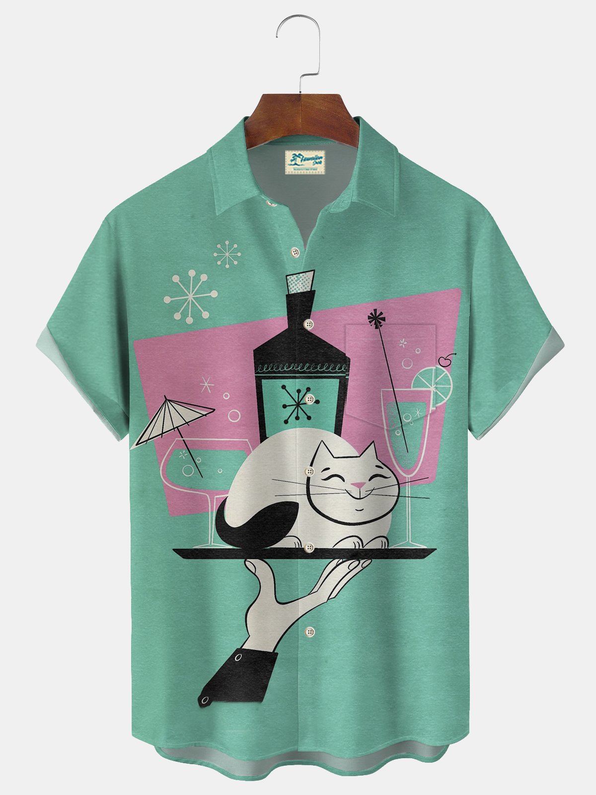 Alohadaddy® Retro Mid-Century Cocktail Geometric Print Men's Lapel Short Sleeve Shirt Big & Tall