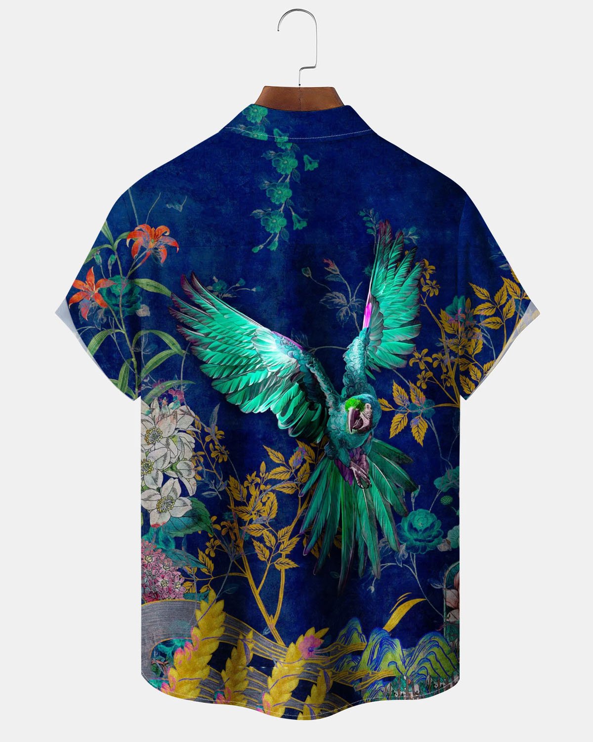 Alohadaddy® Retro Palace Style Parrot Print Art Button-Up Pocket Men's Short-Sleeved Shirt Big & Tall