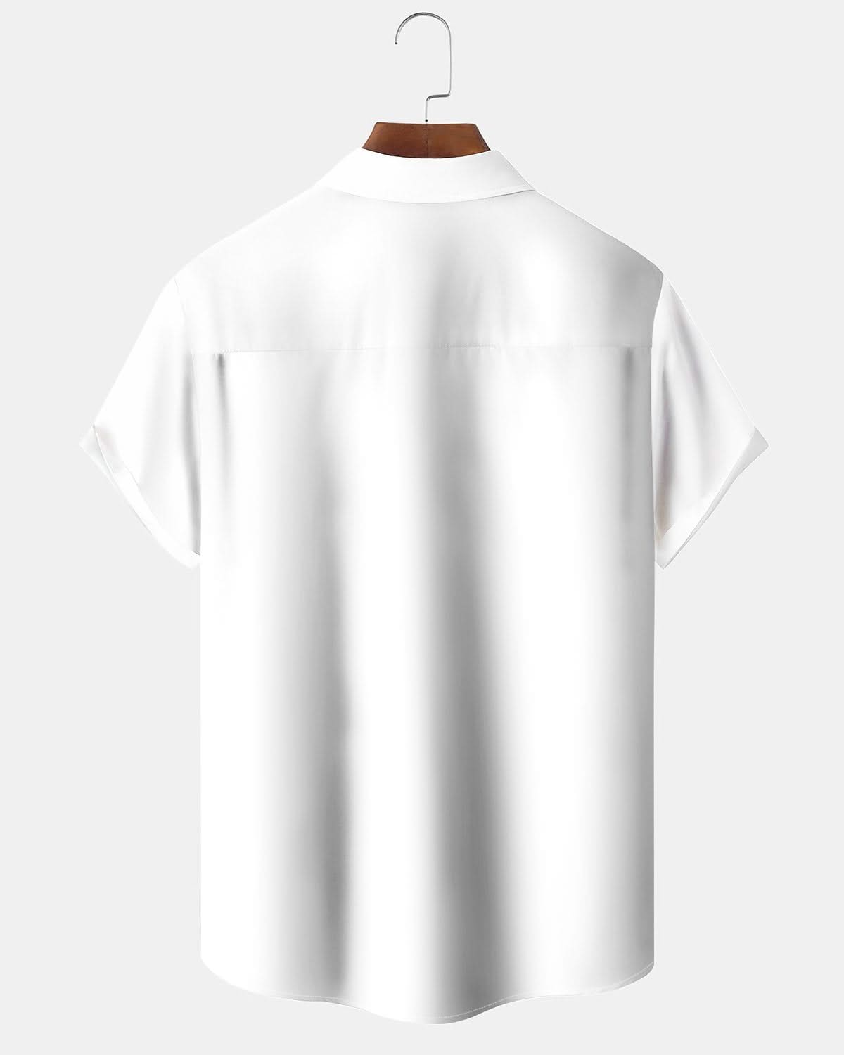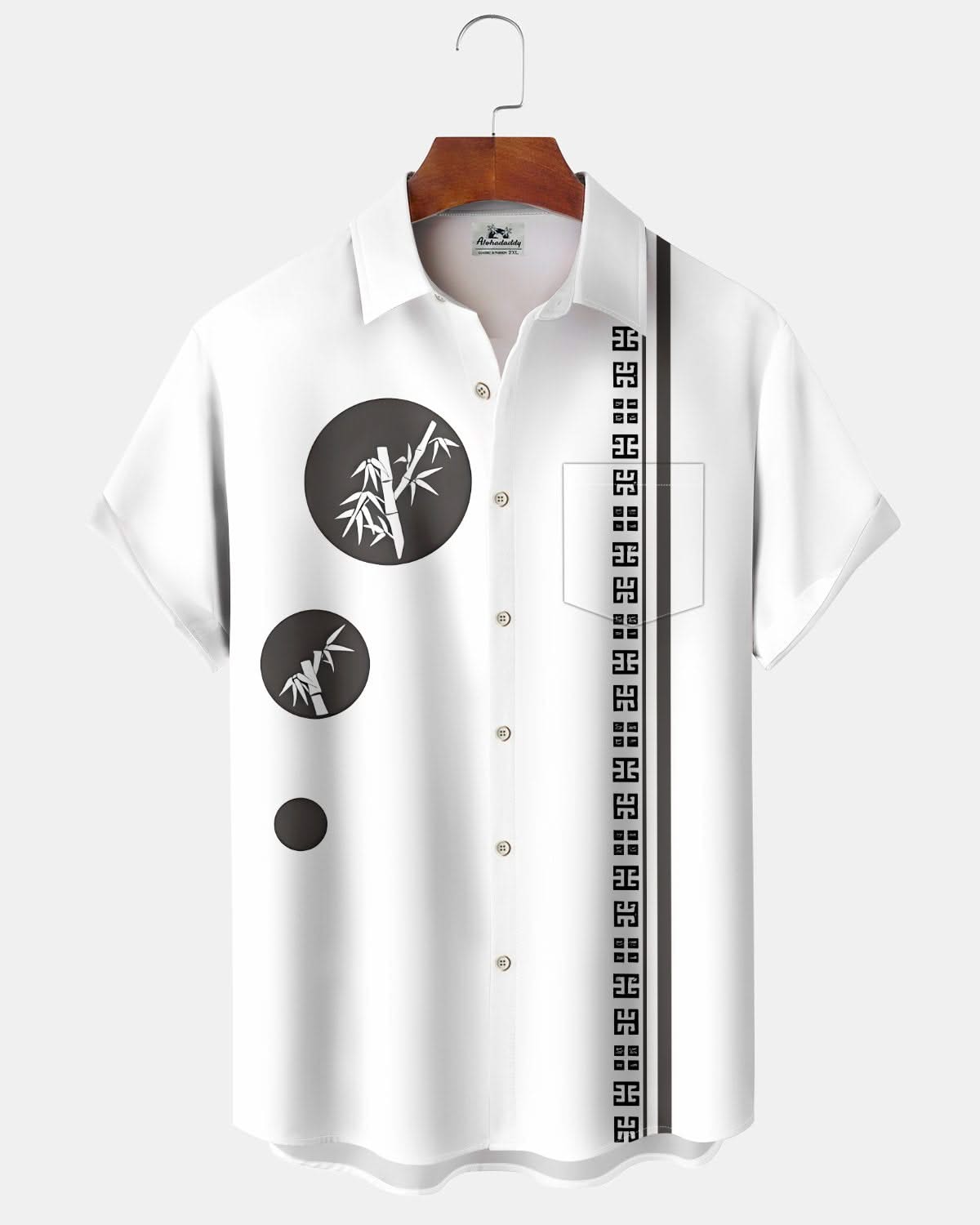 Alohadaddy® Retro Striped Bamboo Print Art Pockets with Elastic Buttons Men's Short Sleeve Shirt Big & Tall