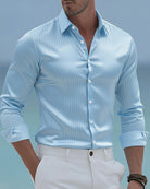 Alohadaddy® Satin Basic Line Print Men's Long-Sleeve Shirt