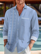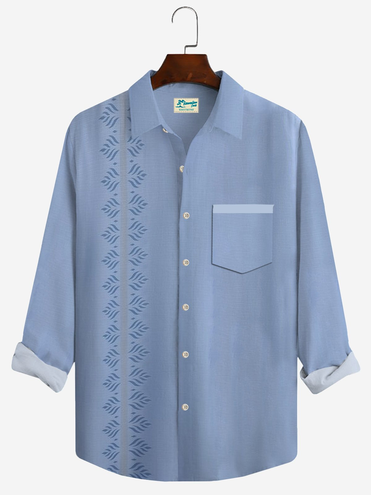 Alohadaddy Guayabera Floral Print Resort Beach Long Sleeve Camping Pocket Shirt
