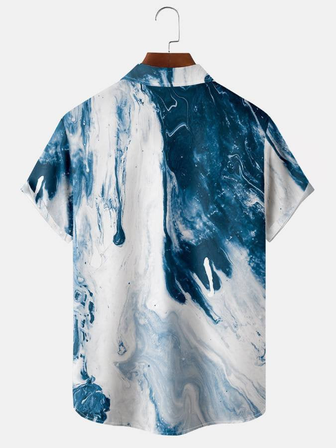 Chemise hawaïenne décontractée à manches courtes et respirante pour homme, avec impression de lignes de peinture à l'huile