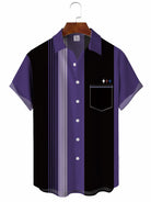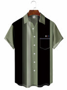 Chemise de bowling décontractée à manches courtes à rayures pour hommes