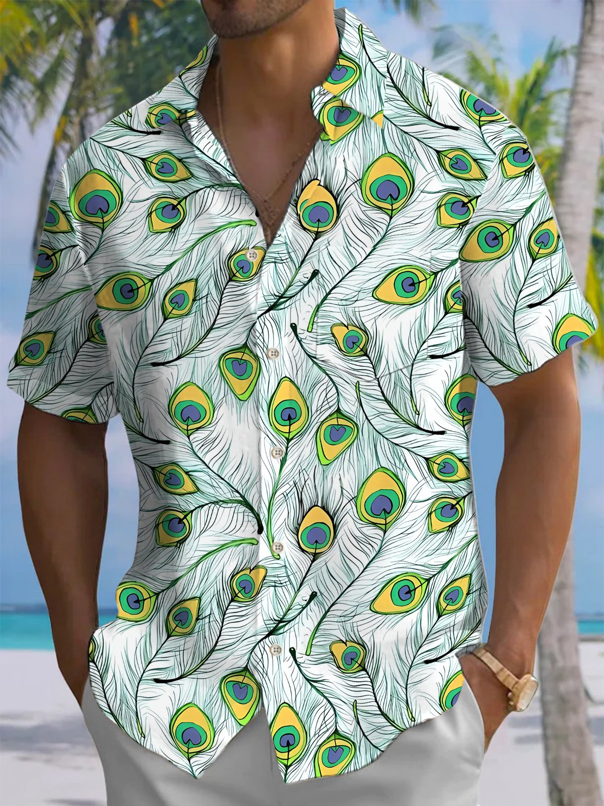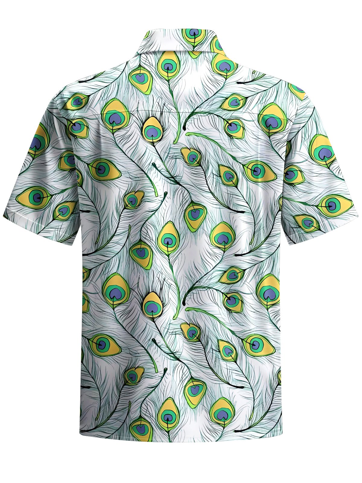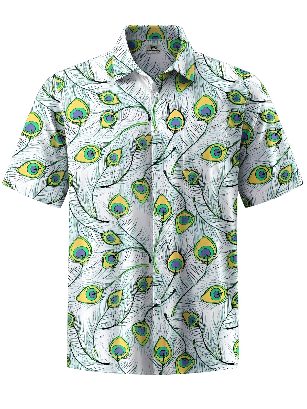 Alohadaddy® Casual Peacock Feather Painting Art Print Chest Pocket Men's Short Sleeve Shirt Big & Tall