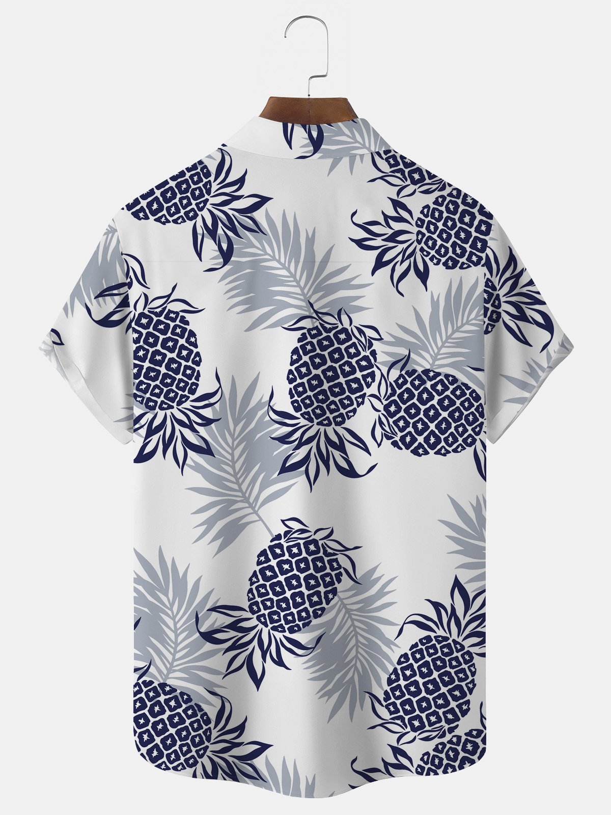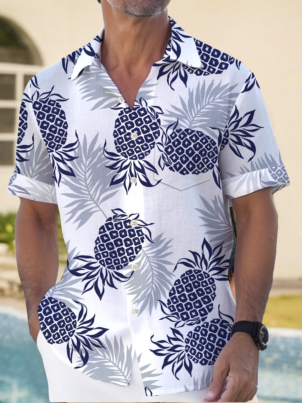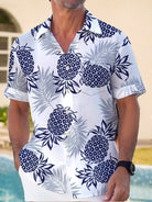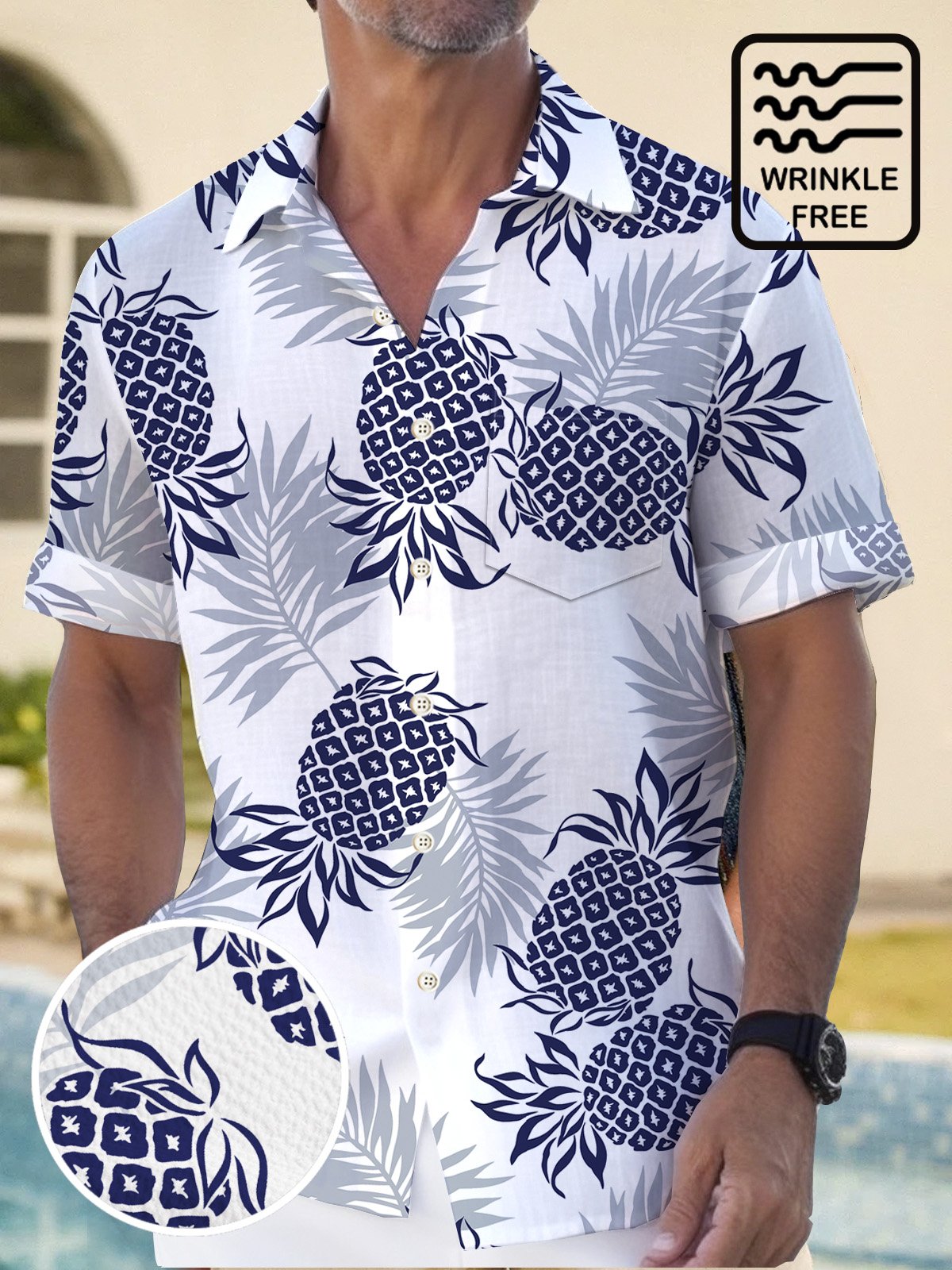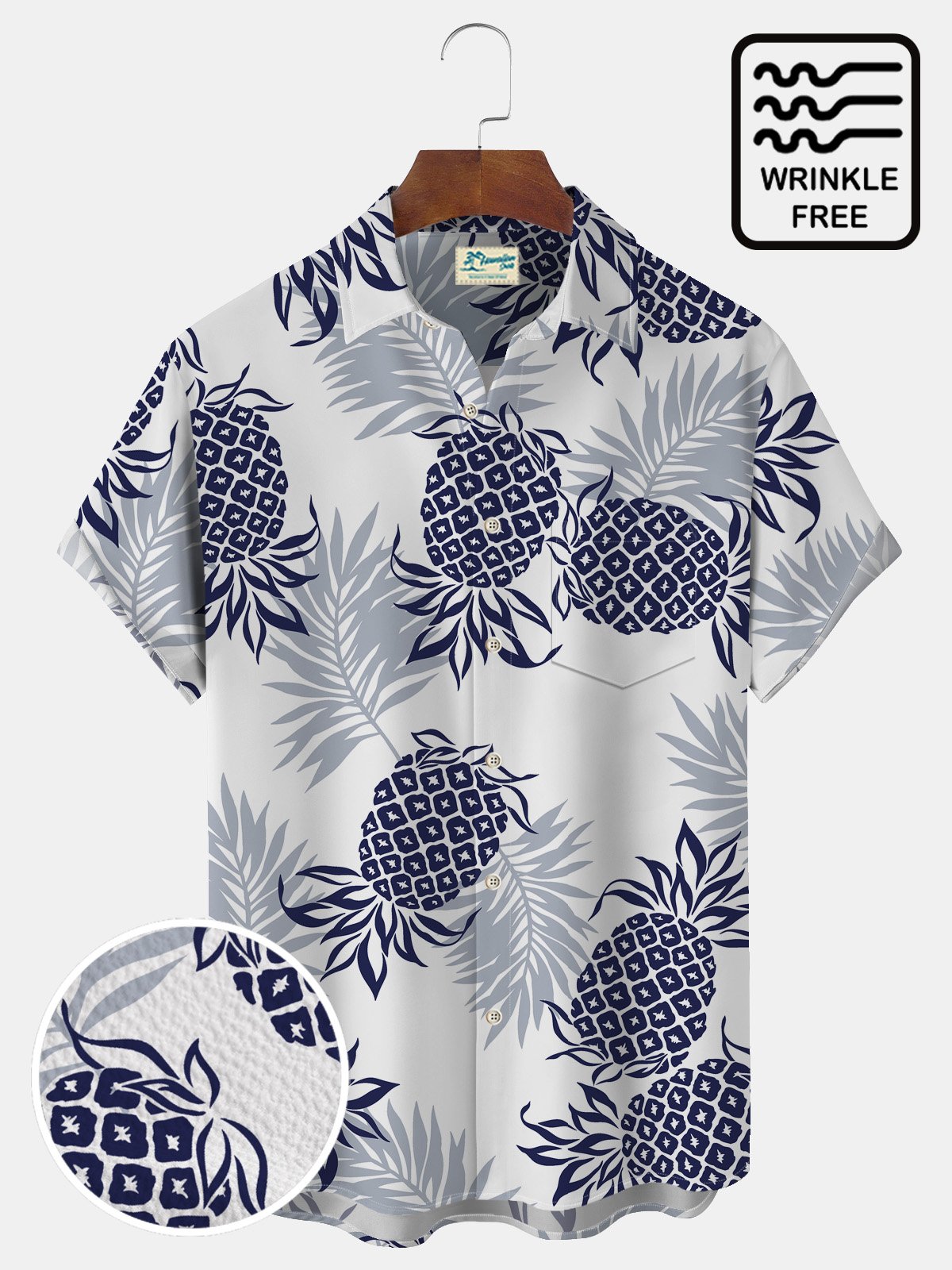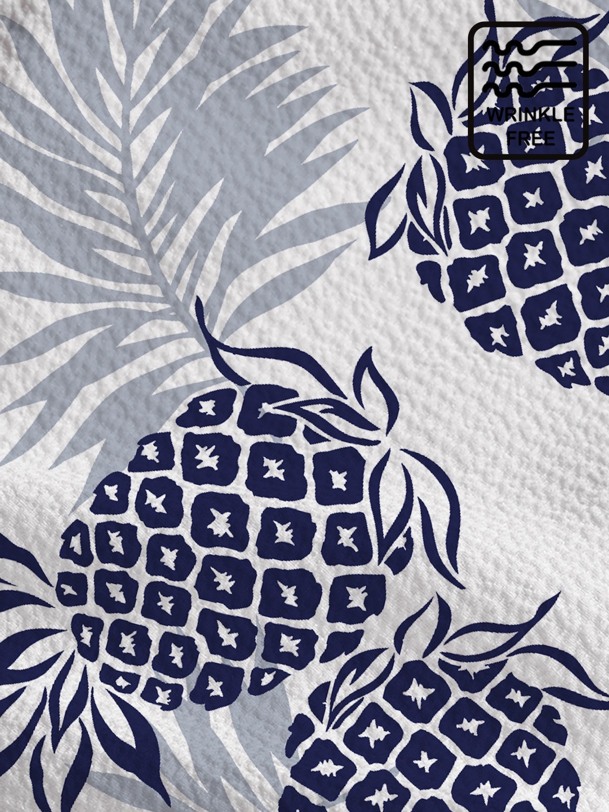 Alohadaddy Beach Vacation Men's Hawaiian Tropical Pineapple Shirts Wrinkle Free Seersucker Camp Casual Pocket Shirts