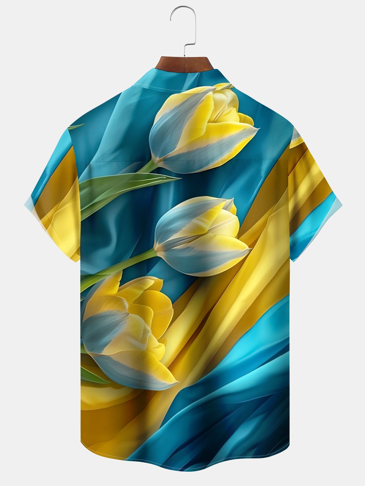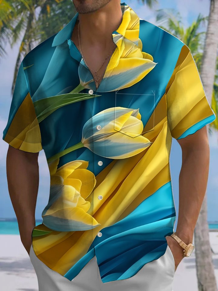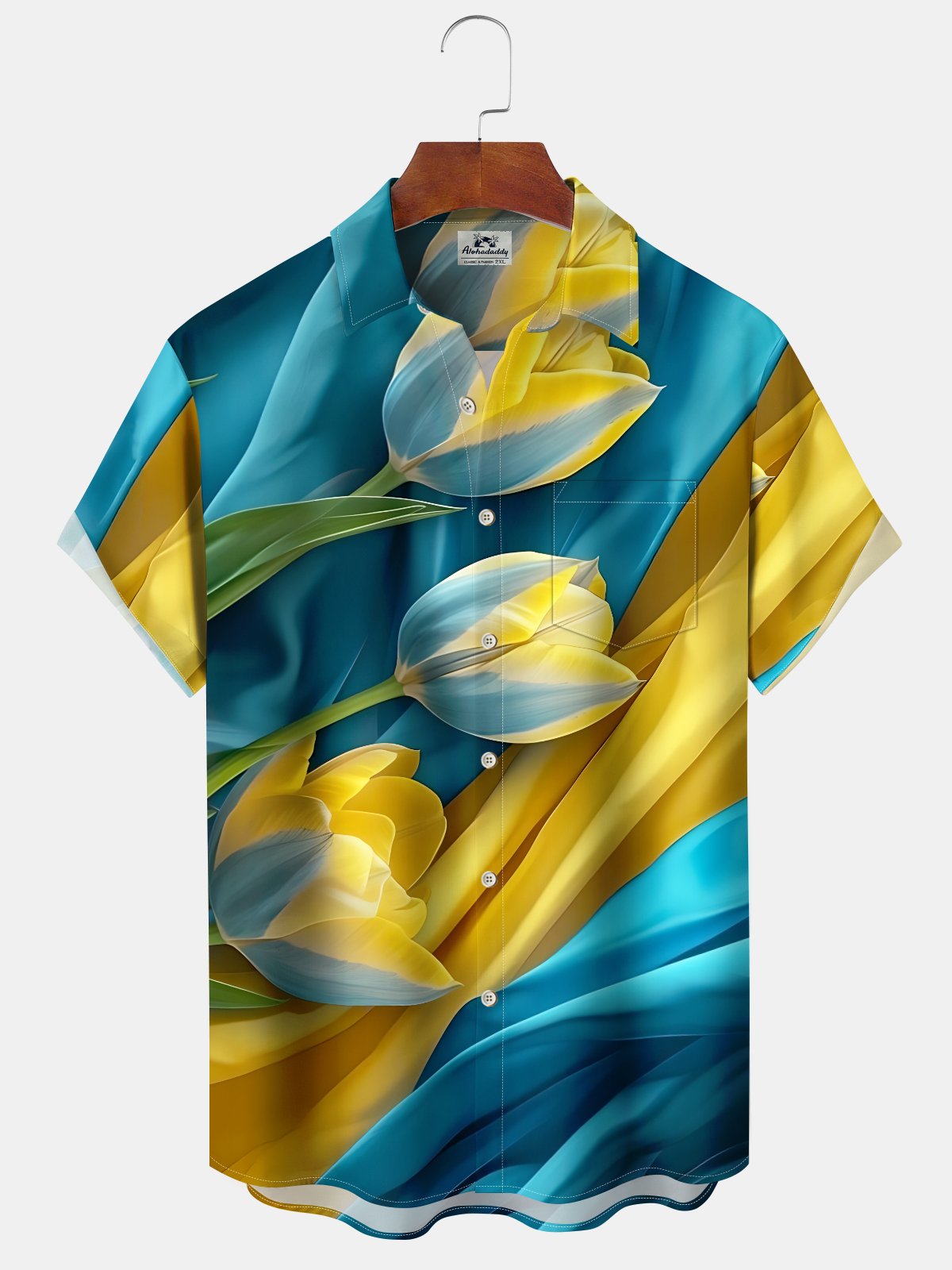 Alohadaddy Casual Collection Hawaiian Abstract Flowers Print Art Button Cardigan Pockets Fresh Stretch Polyester Short Sleeve Shirt