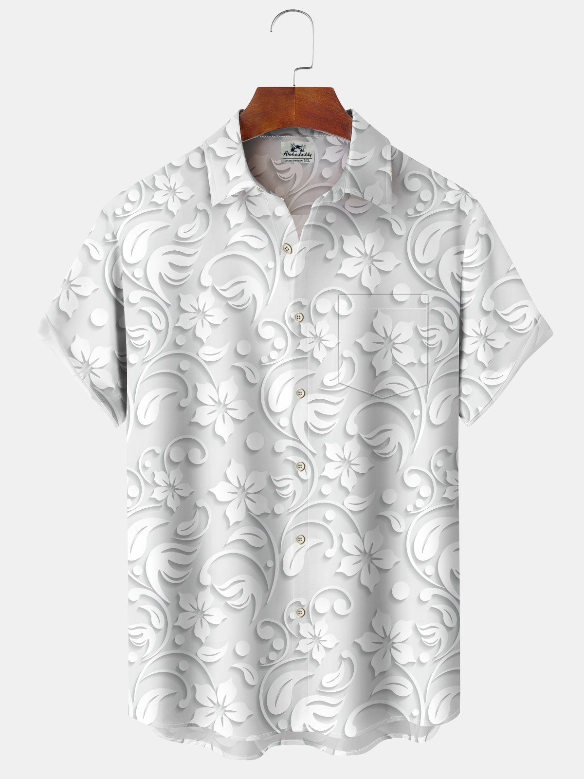 Alohadaddy Casual Everyday Flowers Print Art Stretch Oversized Button Cardigan Polyester Short Sleeve Shirt
