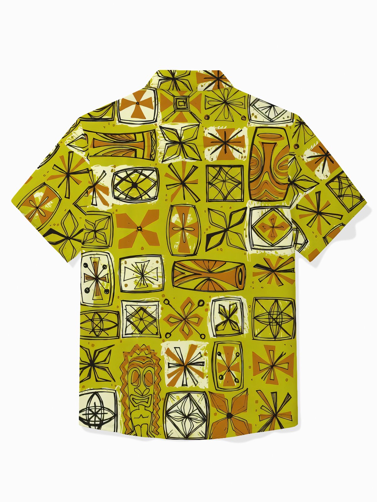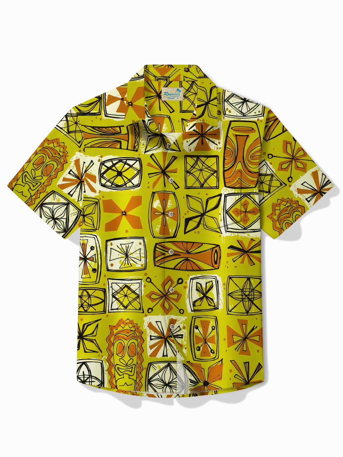 Alohadaddy Hawaiian Tiki Printed Men's Button Pocket Shirt