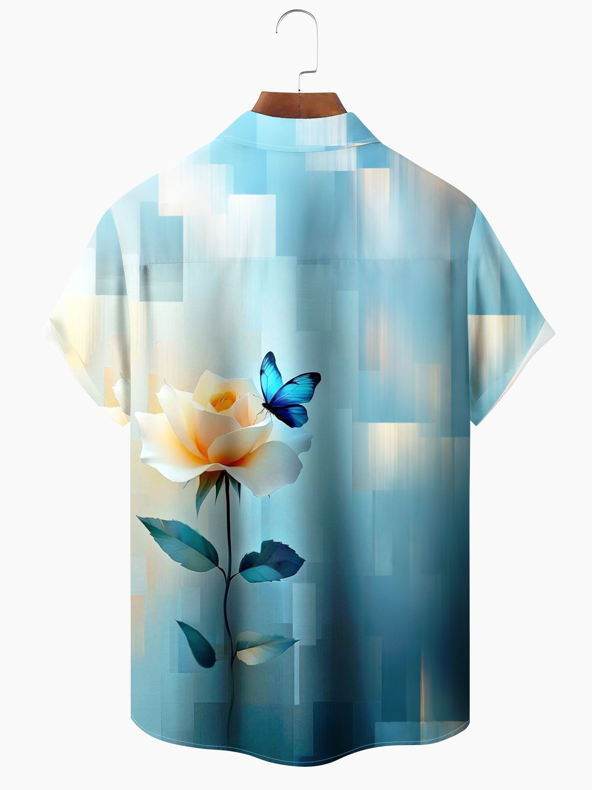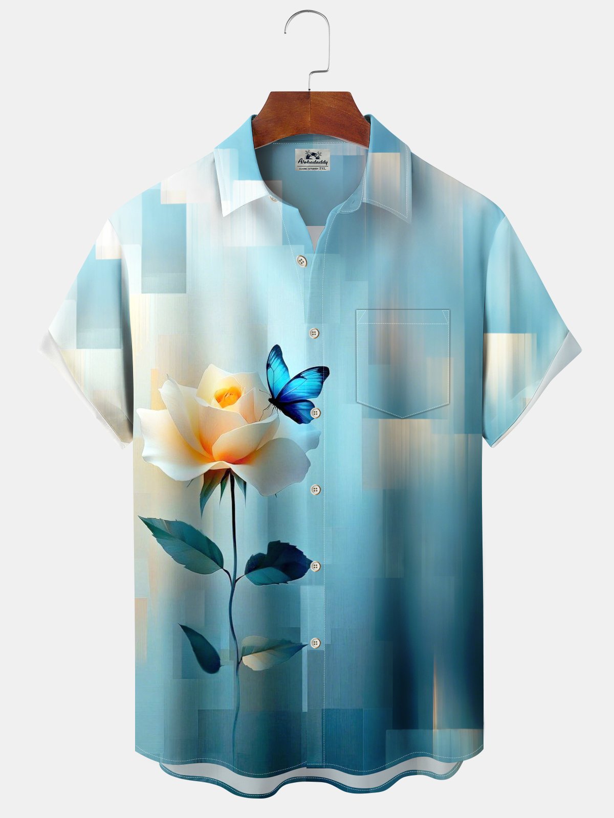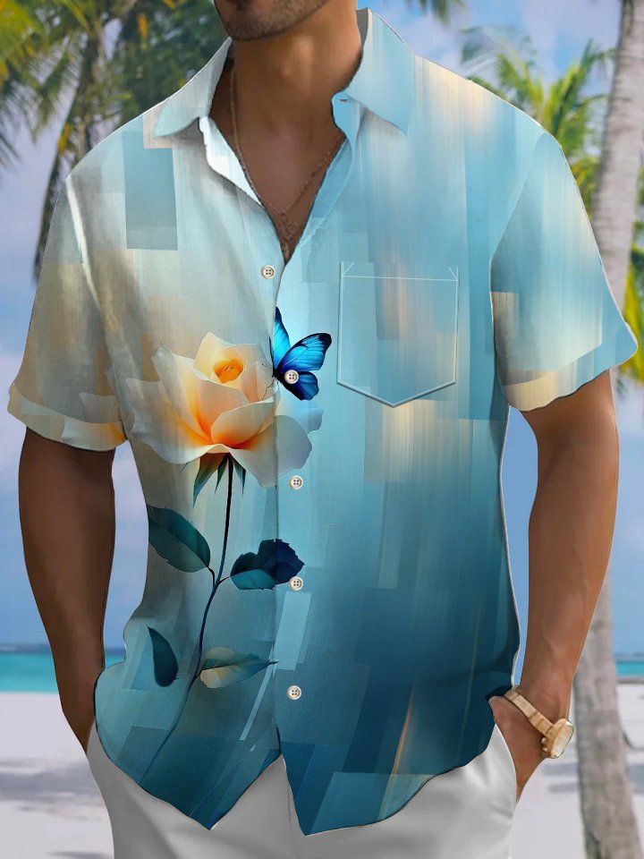 Alohadaddy Hawaiian Unsupported Floral Print Art Buttons Pockets Cardigan Stretch Large Size Short Sleeve Shirt
