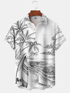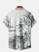 Chemise hawaïenne peinte à la main pour homme avec paysage de plage de cocotiers