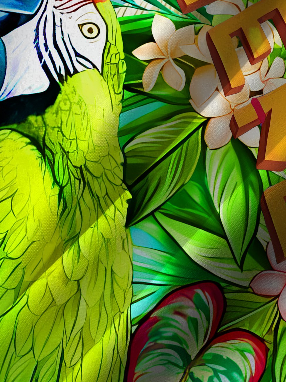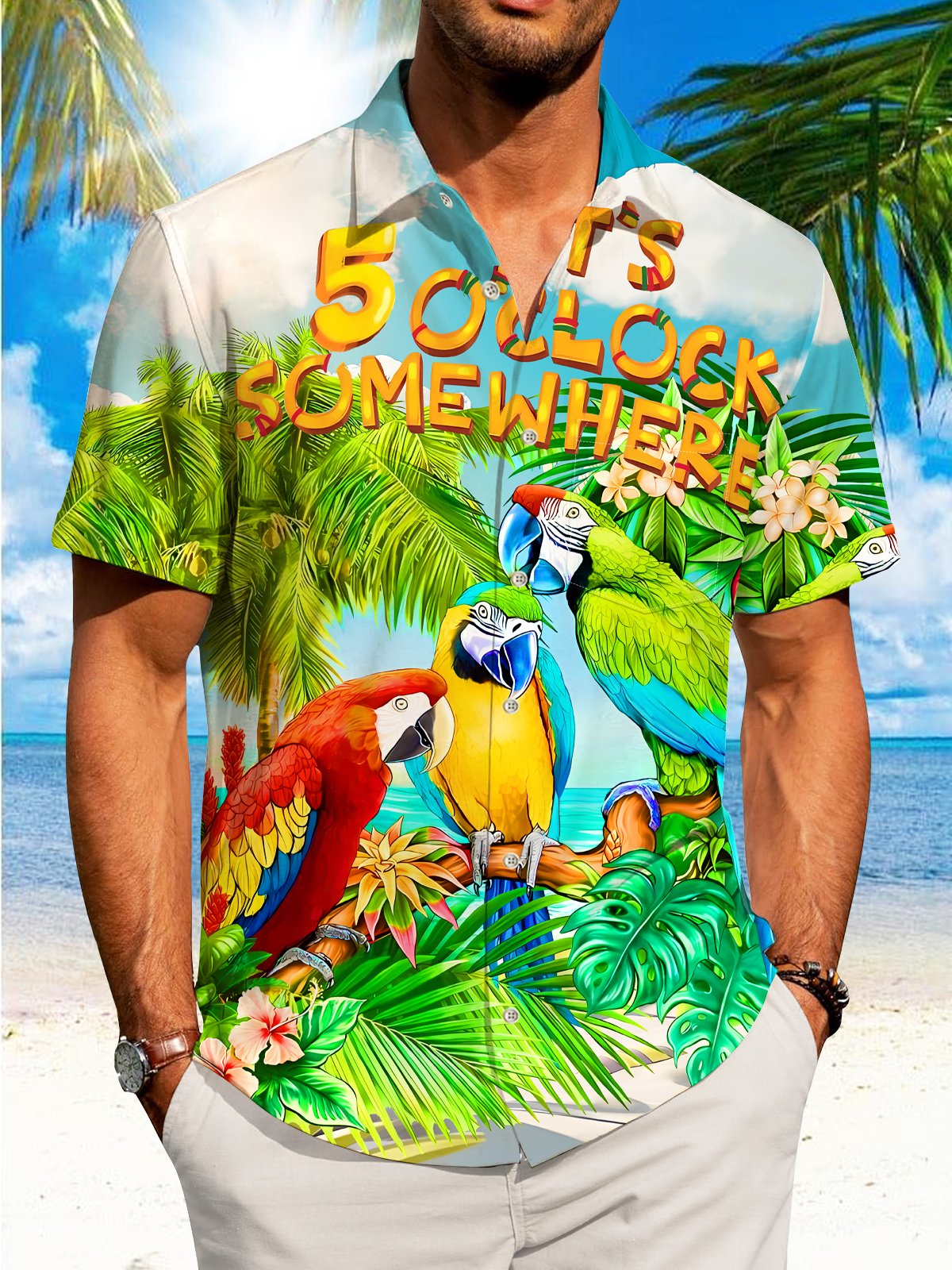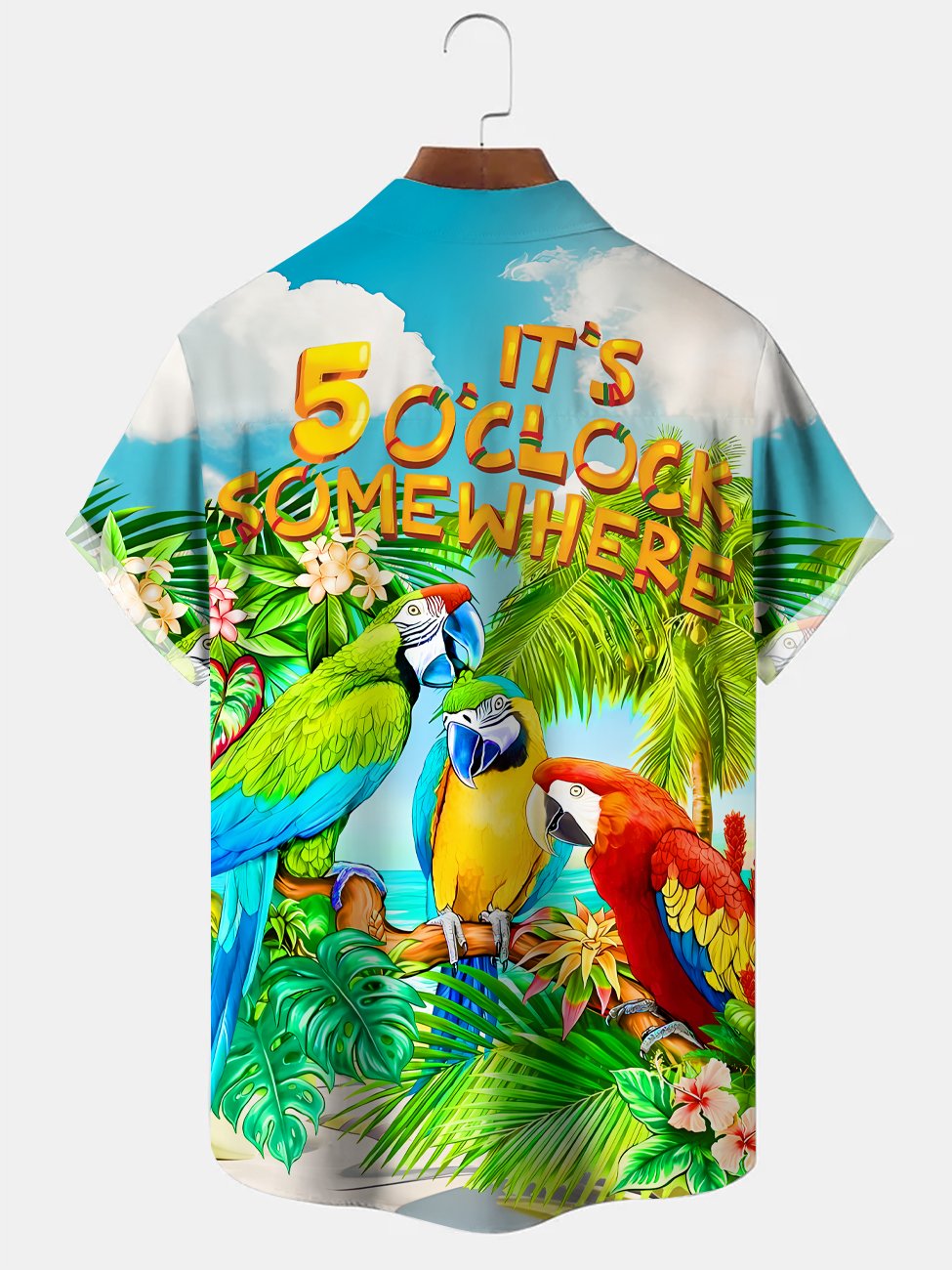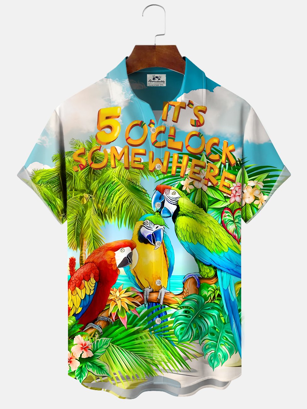 Alohadaddy Beach Parrot Coconut Tree Button Pocket Casual Short Sleeve Shirt