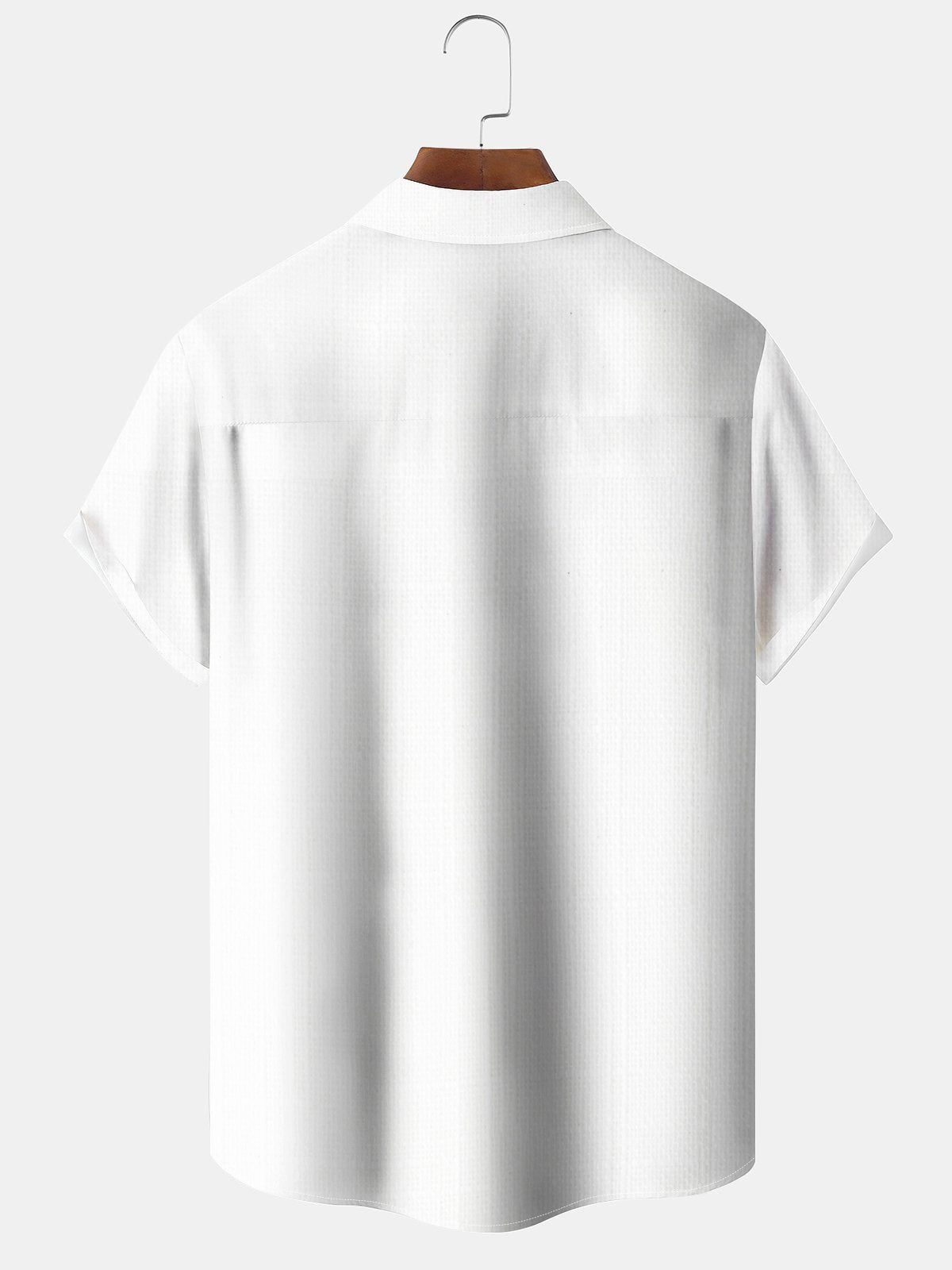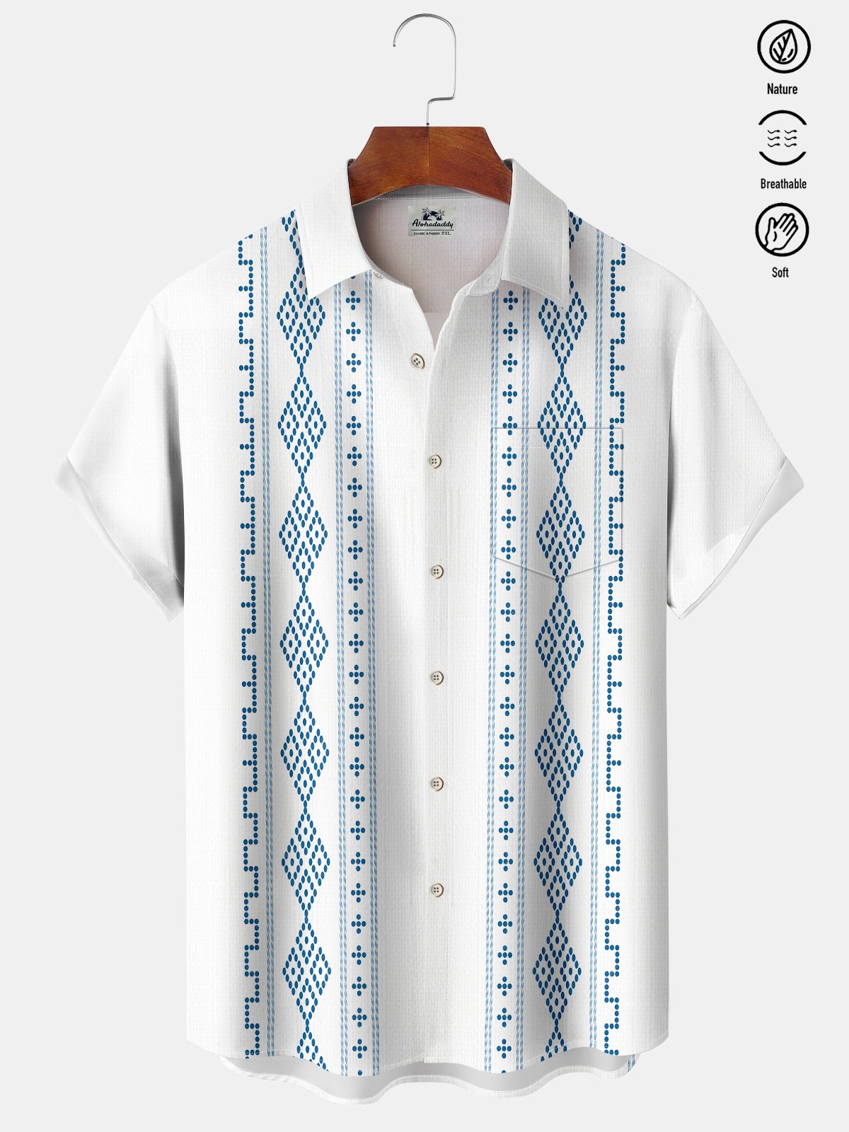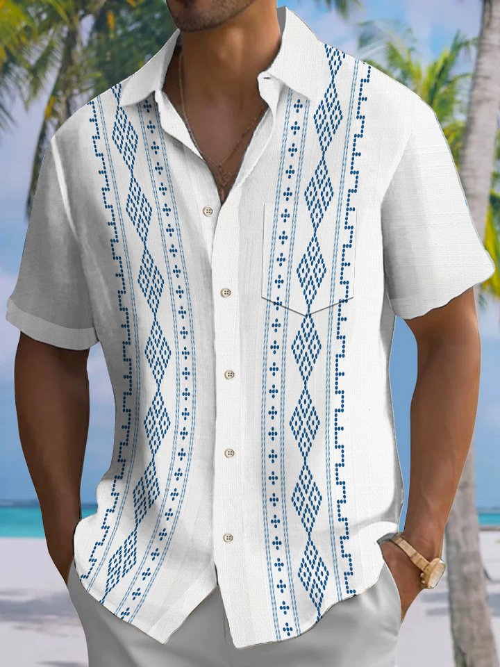 Alohadaddy Casual Collection Geometric Print Art Button Cardigan Pockets Fresh Stretch Polyester Short Sleeve Shirt