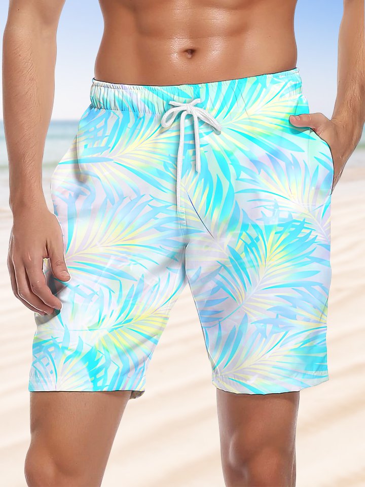 Alohadaddy Coconut Tree Gradient Drawstring Beach Casual Shorts