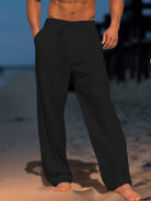 Alohadaddy Men's Beach Daily Loose Linen Elastic Waist Drawstring Trousers