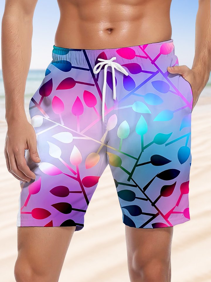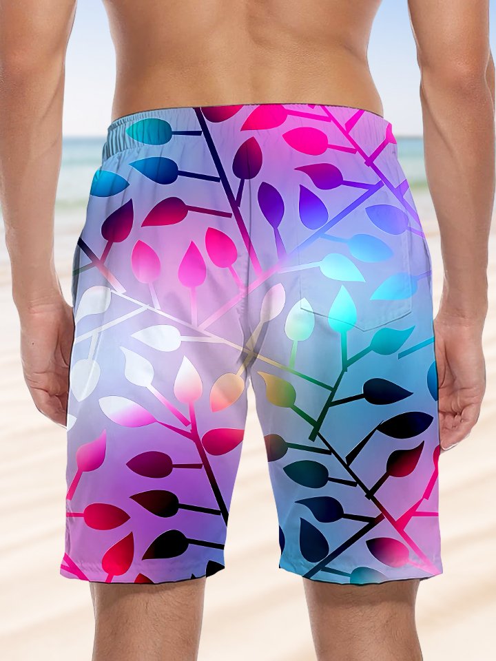 Alohadaddy Plant Leaves Gradient Pocket Drawstring Shorts
