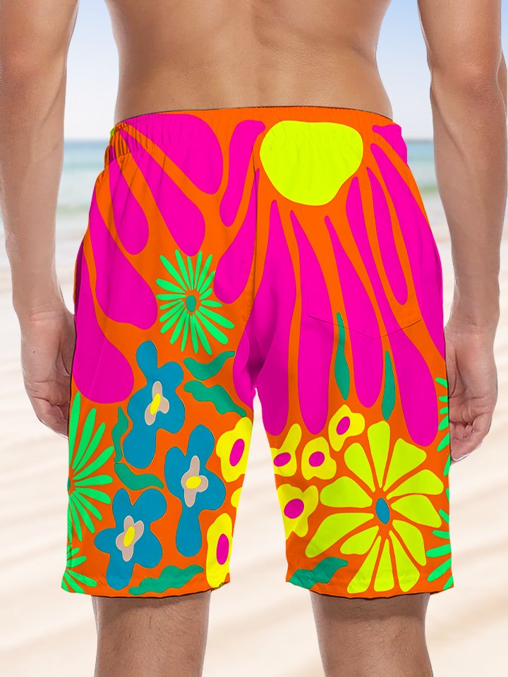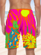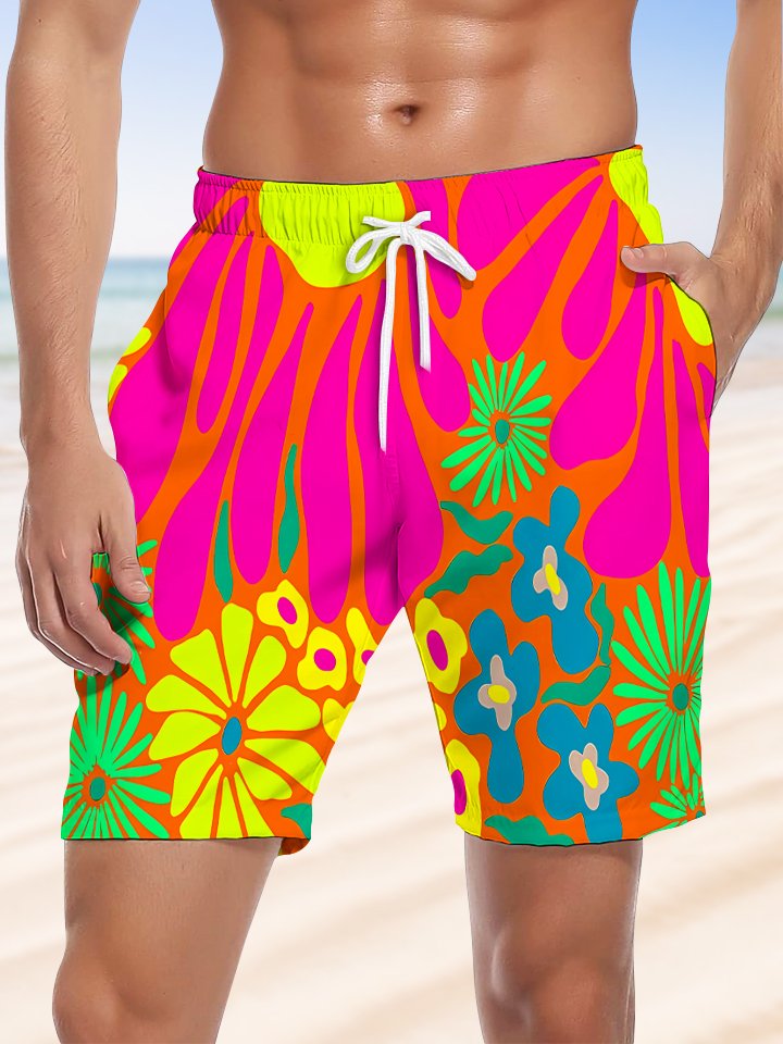 Alohadaddy Plants Flowers Fluorescent Beach Drawstring Pockets Casual Shorts